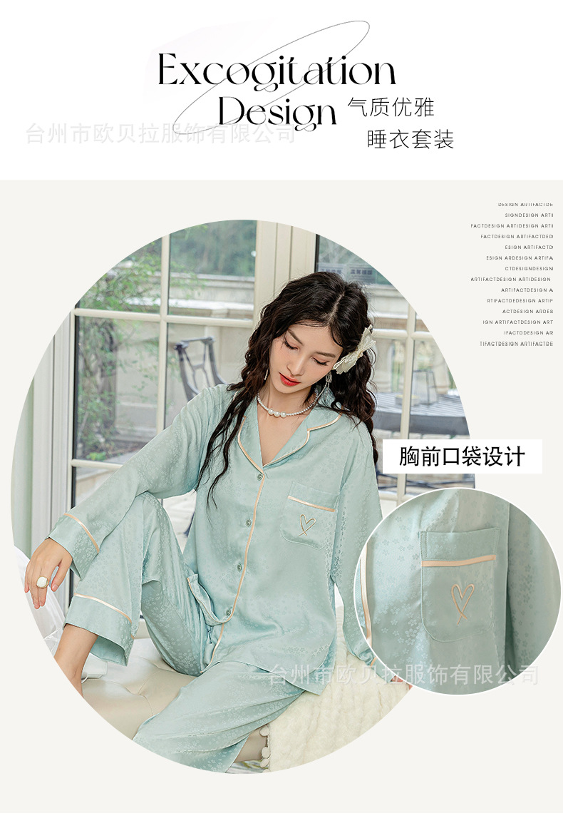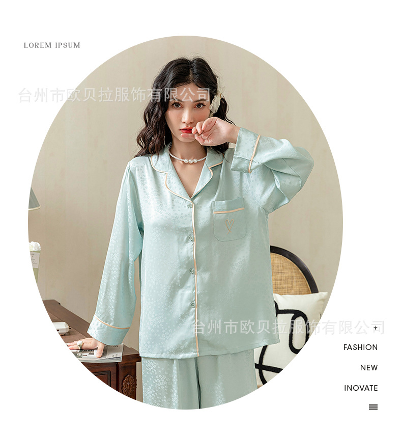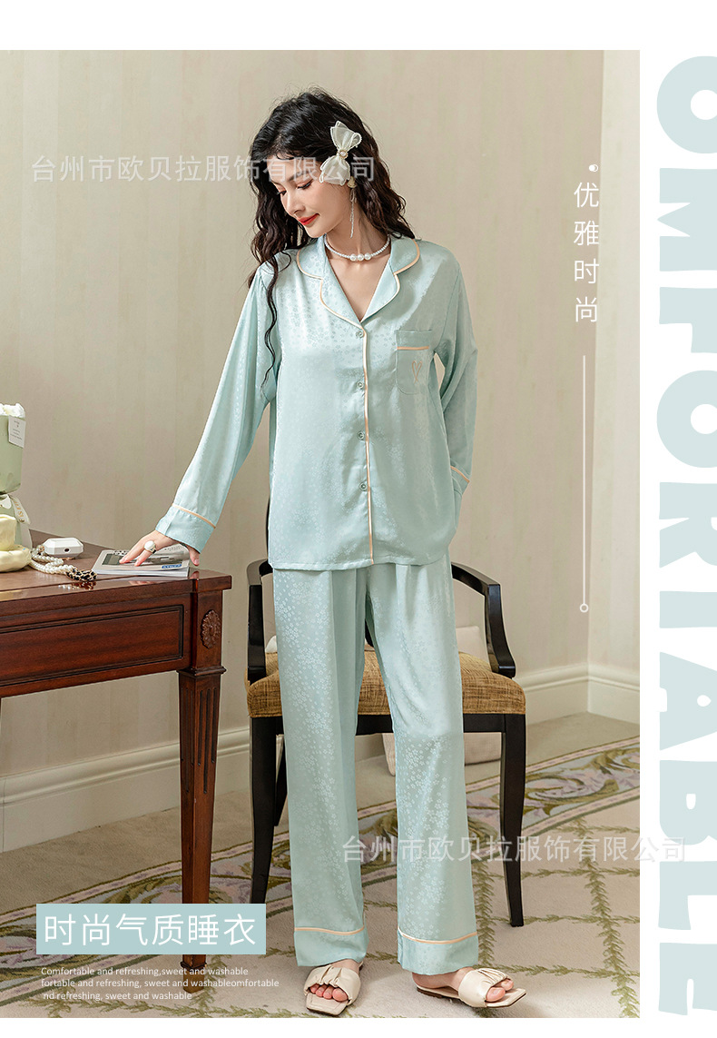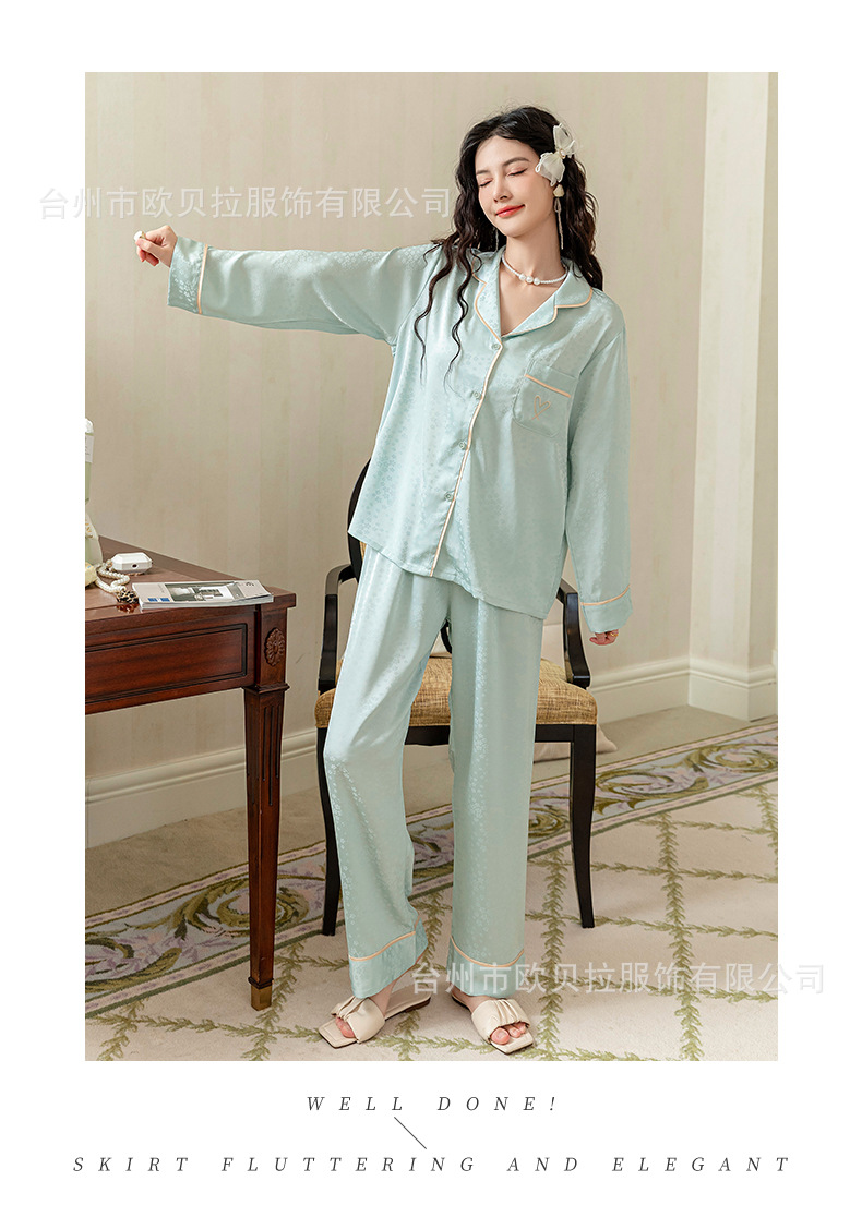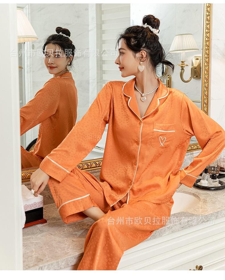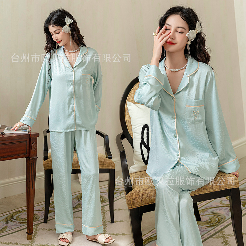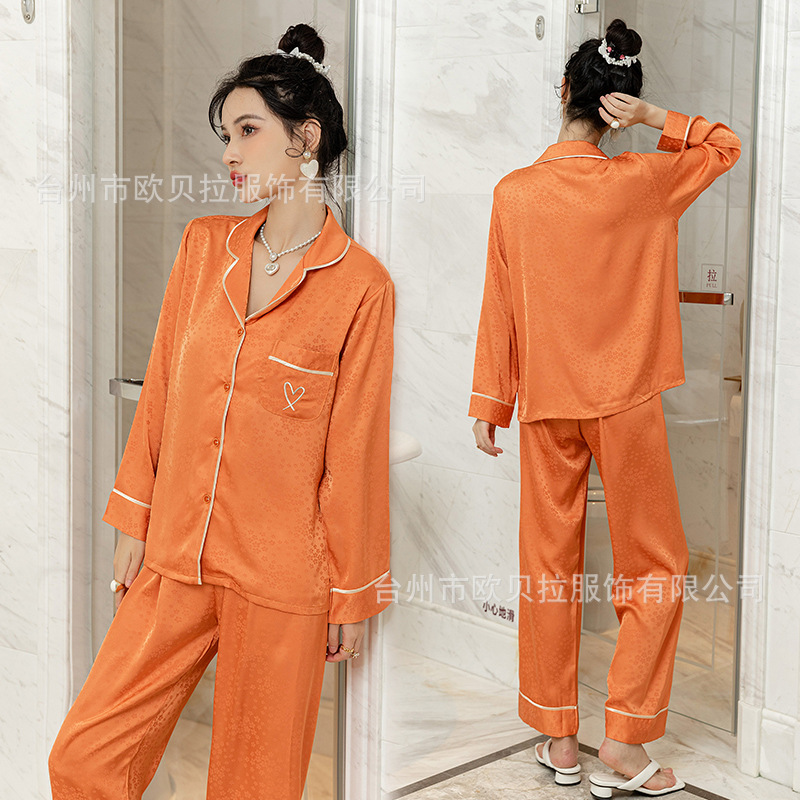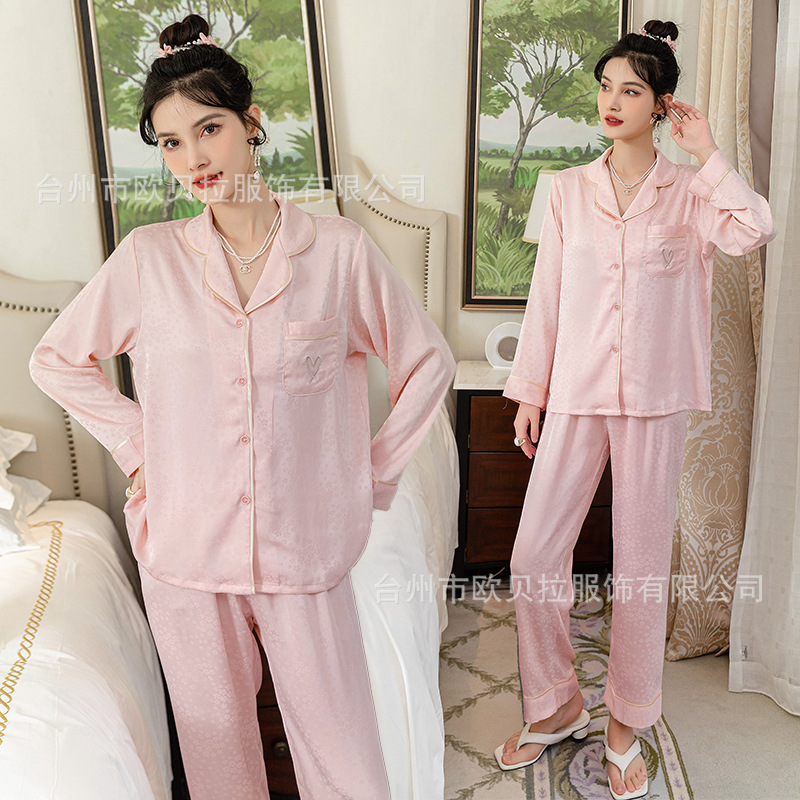 쉐이크 보이스 라이브 온라인 빨간 잠옷 여성용 봄과 여름 자카드 얼음과 눈 실크 긴 소매 바지 고급 가을 얇은 가정 의류스토어 가기