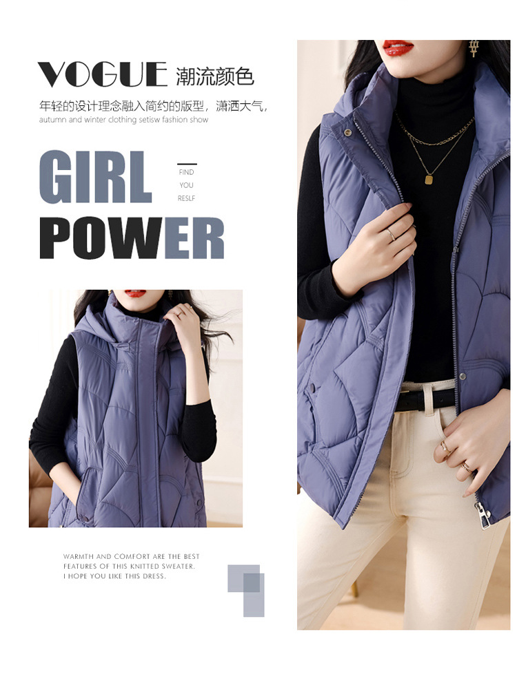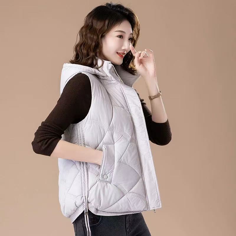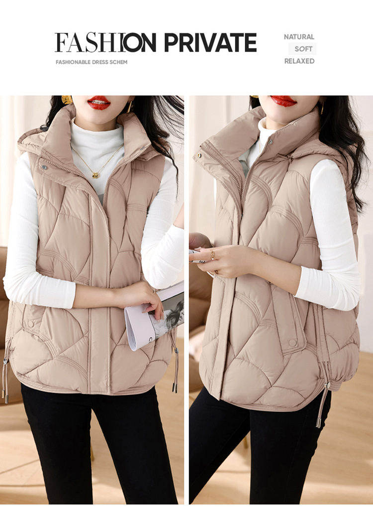 패셔너블한 신상 여성용 다운 코튼 조끼 2025 스타일리시한 스탠드 칼라 조끼 코튼 쇼트 조끼 다운 베스트