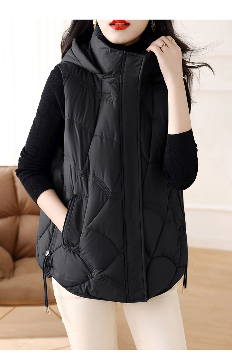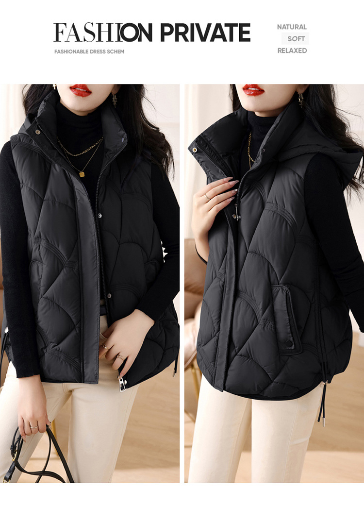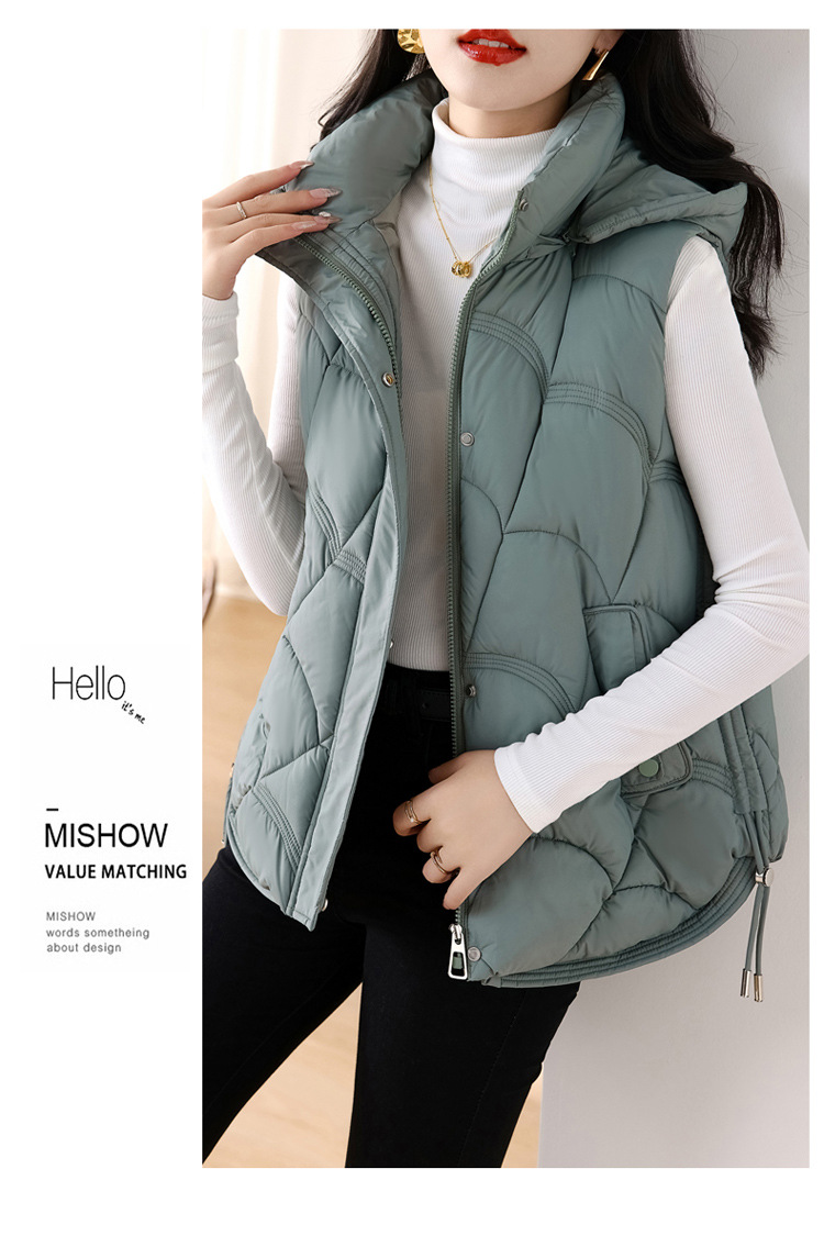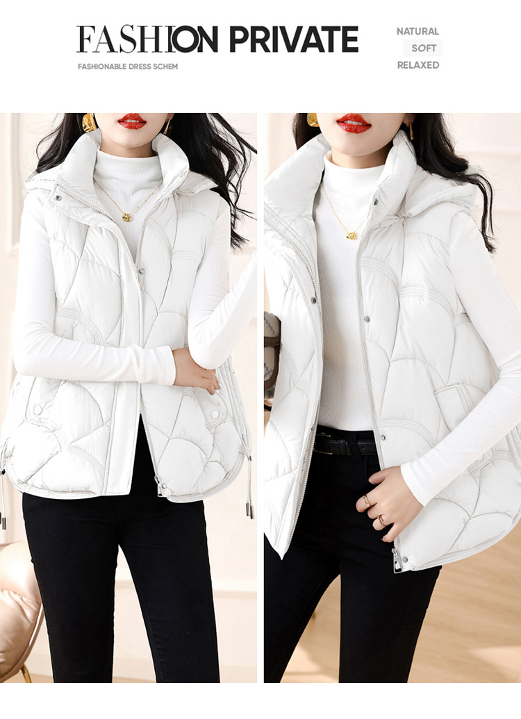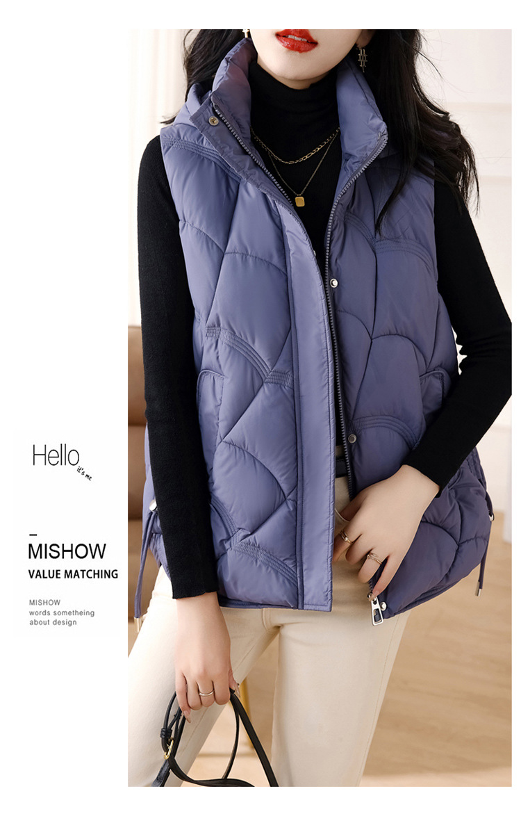 패셔너블한 신상 여성용 다운 코튼 조끼 2025 스타일리시한 스탠드 칼라 조끼 코튼 쇼트 조끼 다운 베스트스토어 가기