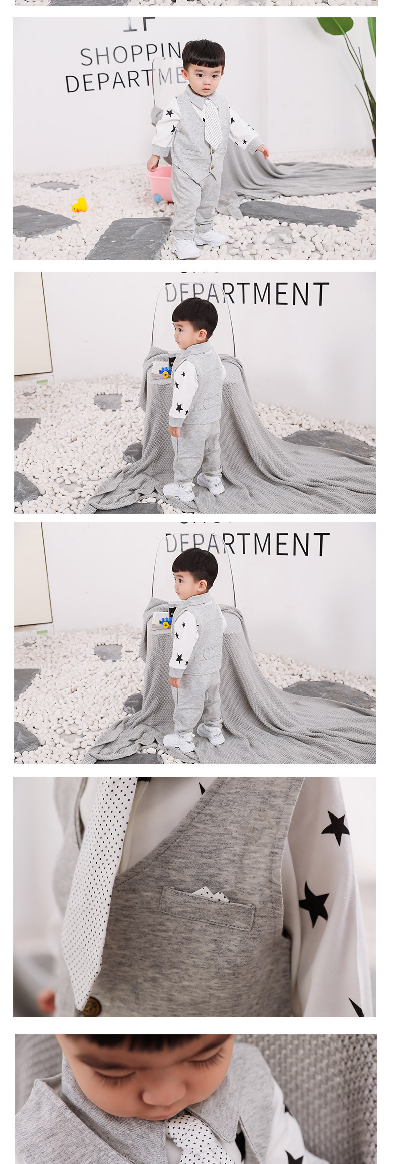 소년 세트 아기 점프 슈트 가을과 겨울 영국 긴팔 3 종 세트 1 세 원피스 아기 삼각형 모자