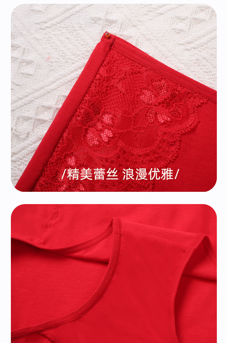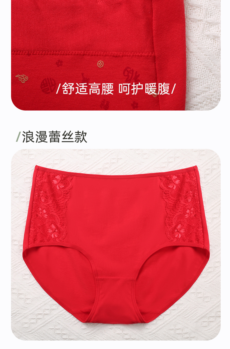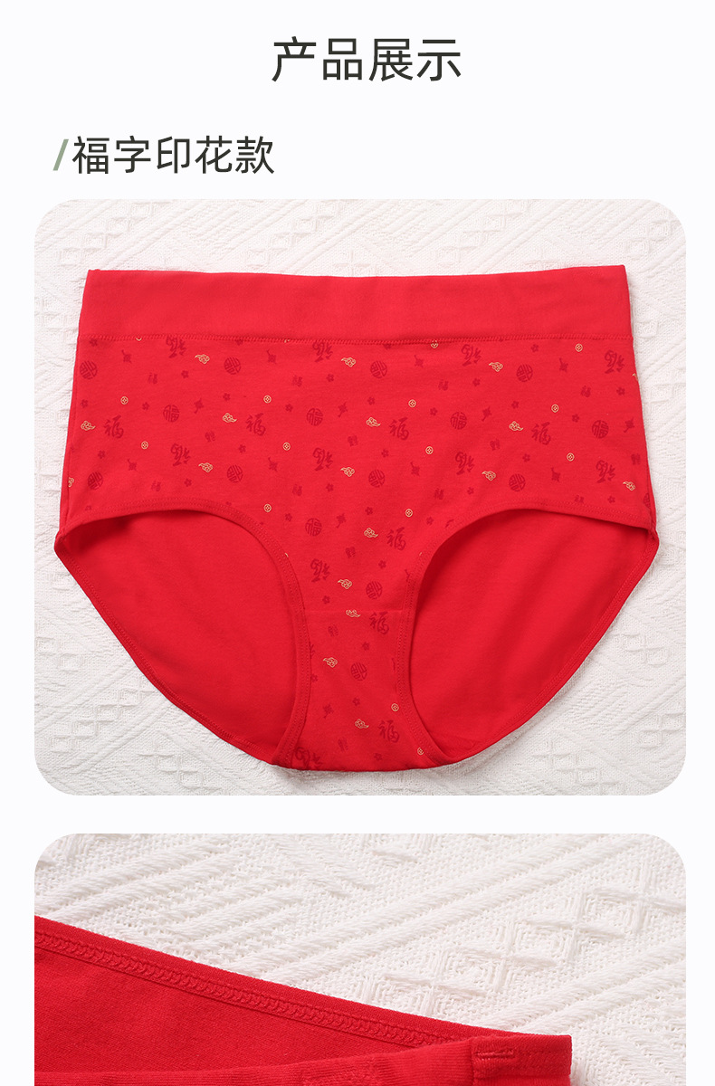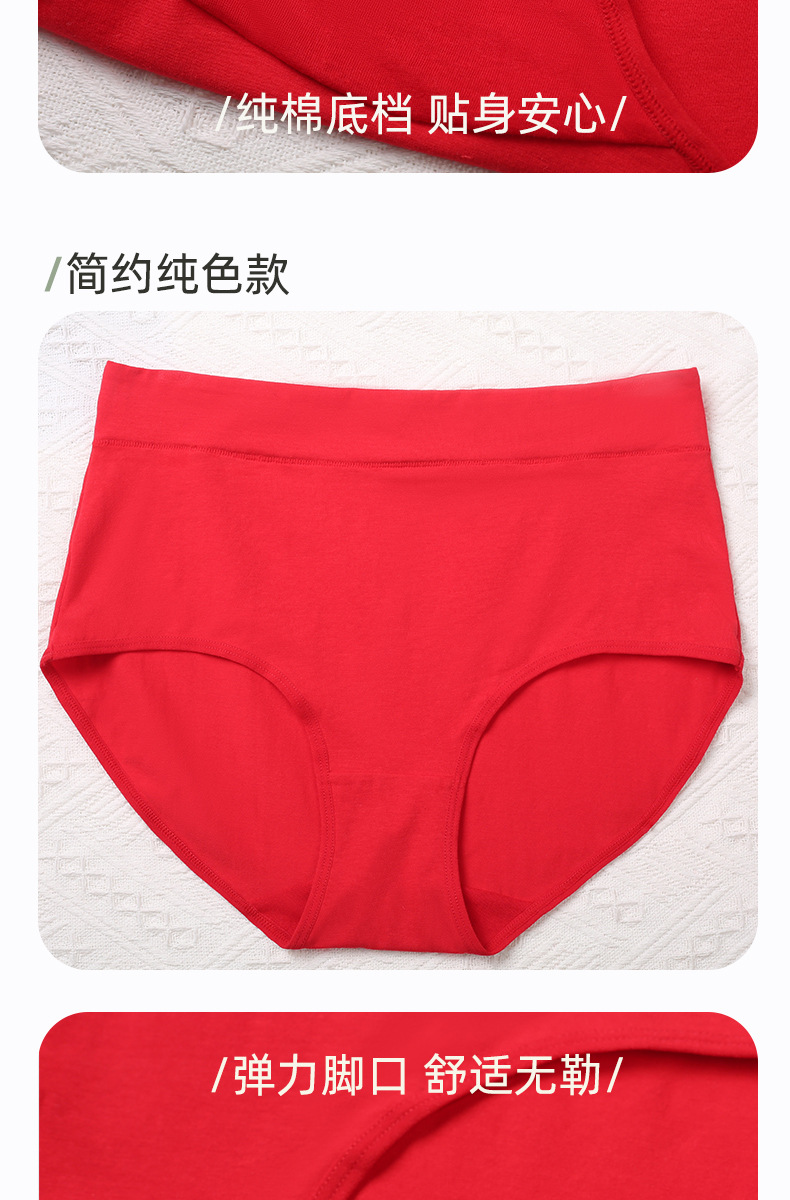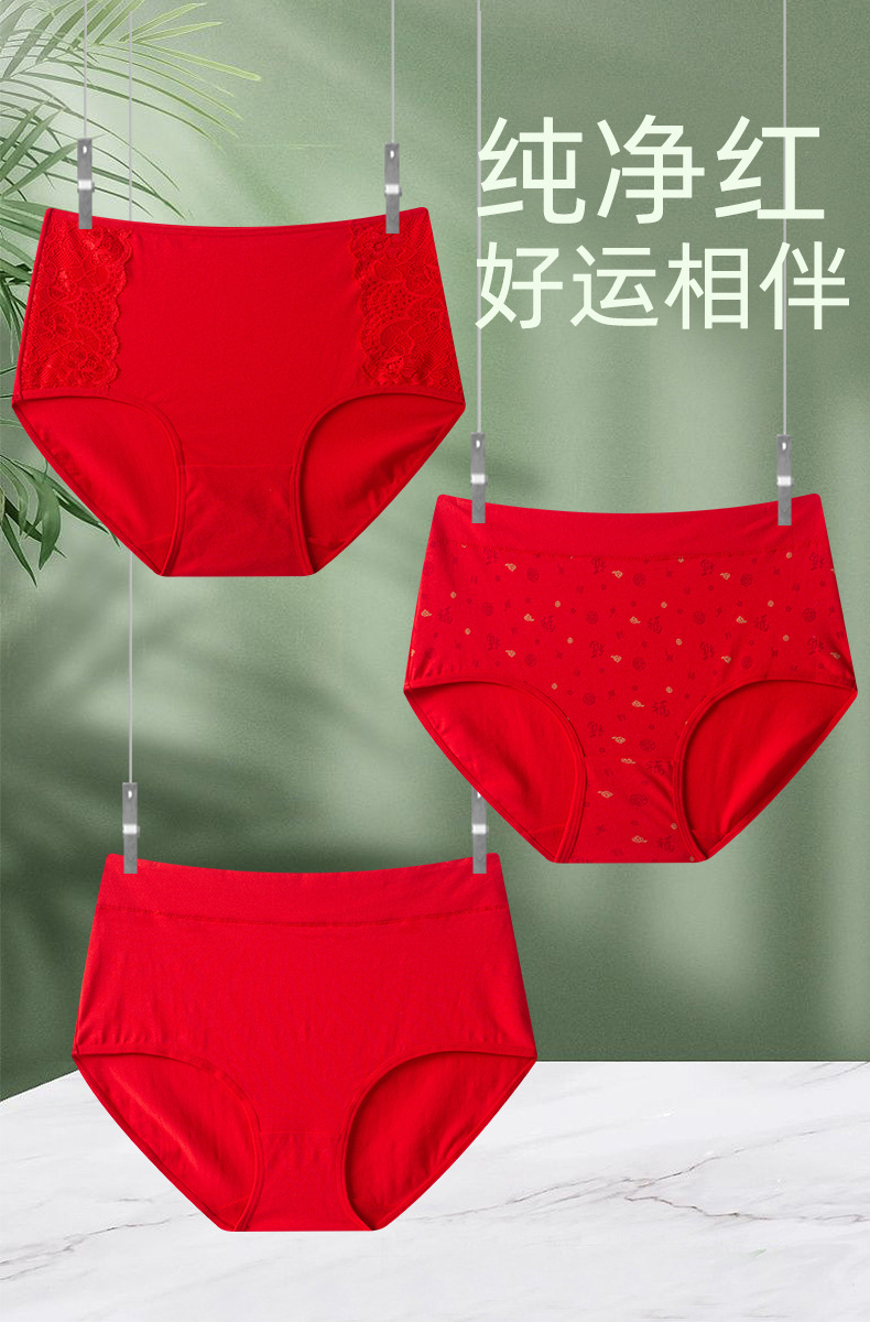 순면 레드 하이 웨이스트 여성 속옷 어머니의 생활 반바지 플러스 사이즈 속옷 세트 새해 결혼 선물스토어 가기