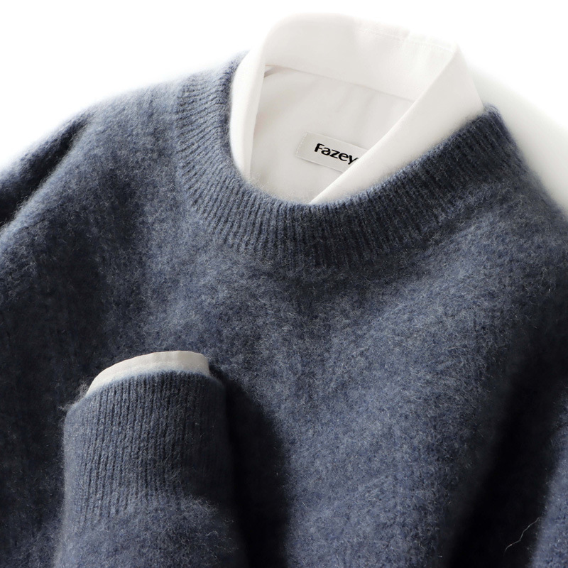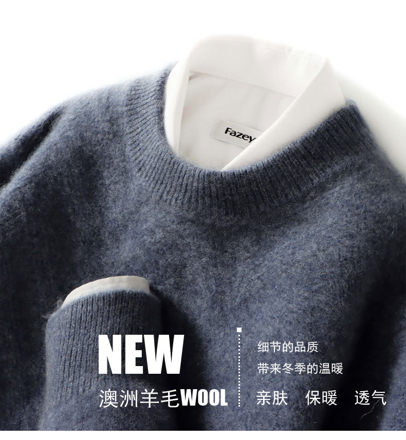 크루넥 두꺼운 남성용 캐시미어 스웨터 가을과 겨울 새로운 단색 스웨터 느슨한 비즈니스 캐주얼 울 니트 베이스 셔츠스토어 가기