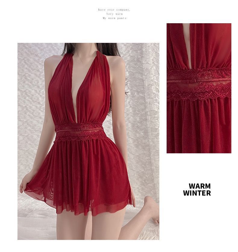 섹시한 잠옷 열정 관점 속옷 섹시 놀리는 레이스 플러스 사이즈 홀터 스커트 유혹 세트 유니폼스토어 가기