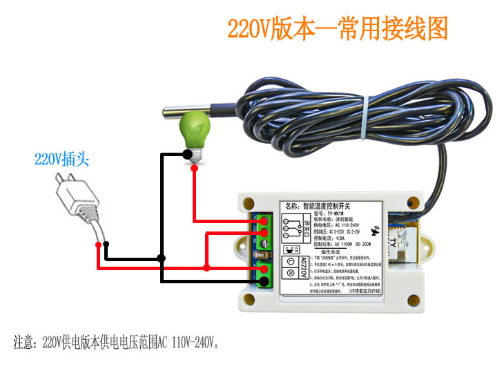 • 220V-WK1W 온도 조절 스위치 와이어 길이 5m