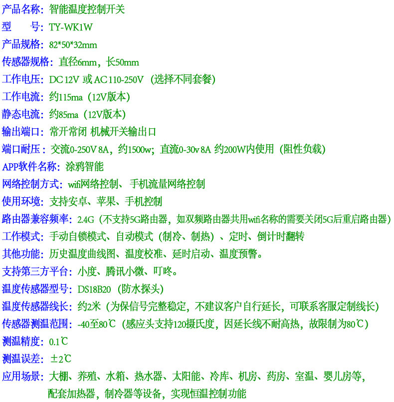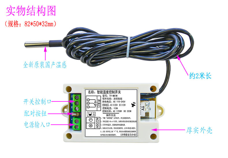 • WK1W 온도 조절 스위치(220V 전원 공급 장치 버전) 와이어 길이 2m