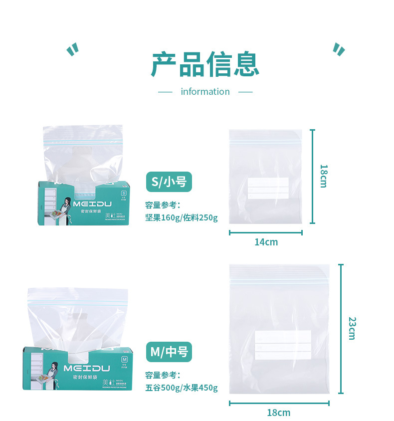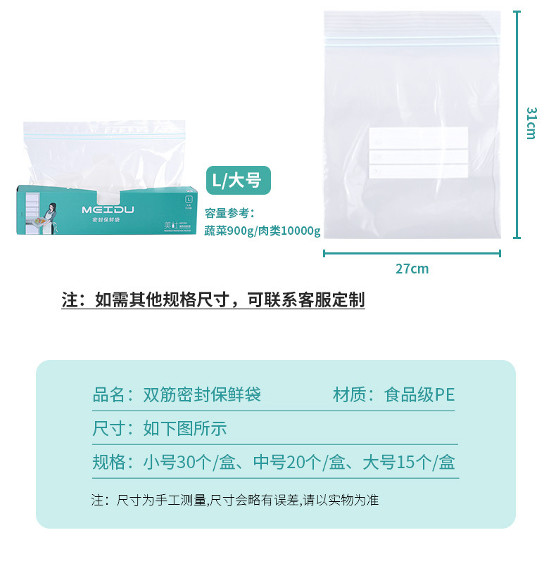 메두 이중 봉투 신선도 유지 백 식품 등급 냉장고 채소 과일 차 건과일 밀봉 백 신선도 유지 포장 식품 등급 안전스토어 가기