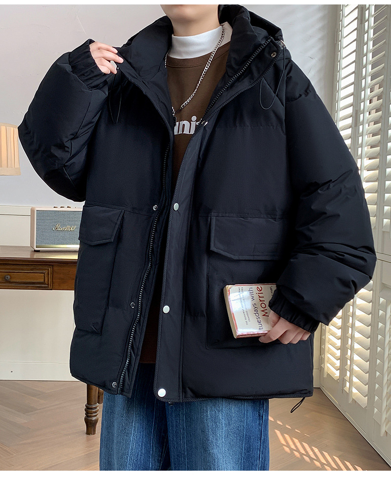 2023 가을과 겨울 새로운 남성 홍콩 스타일 커플 작업복 플러스 사이즈 방풍 따뜻한 다운 재킷 느슨한 후드 재킷 남성스토어 가기