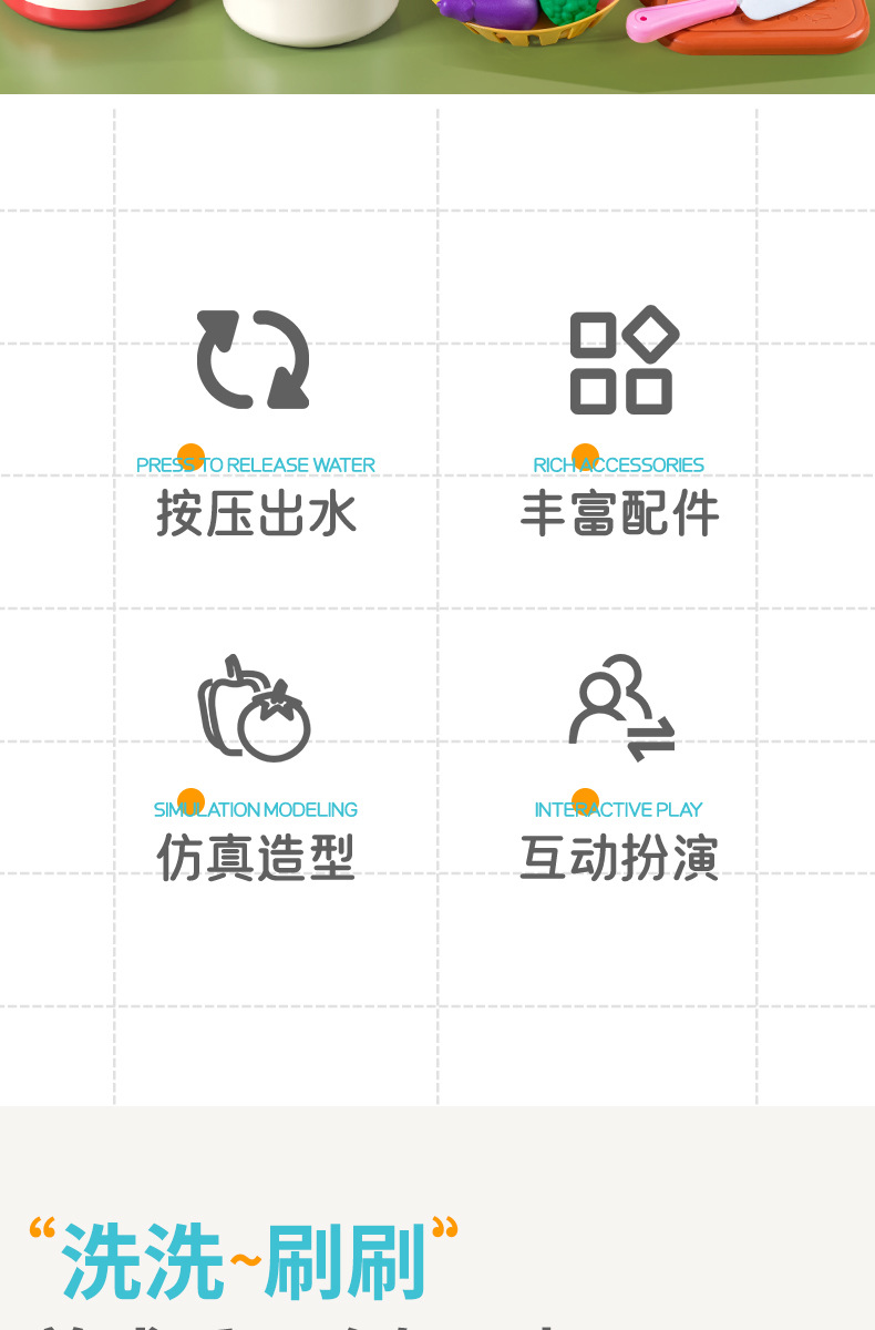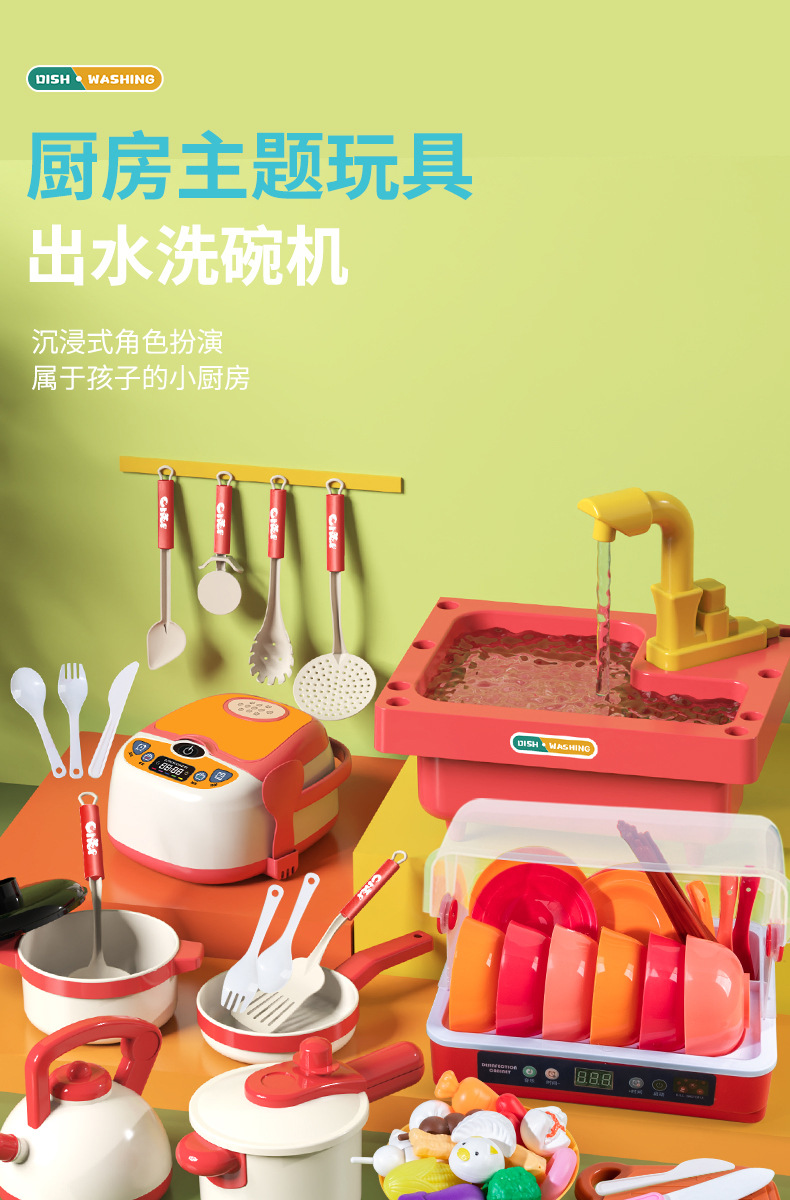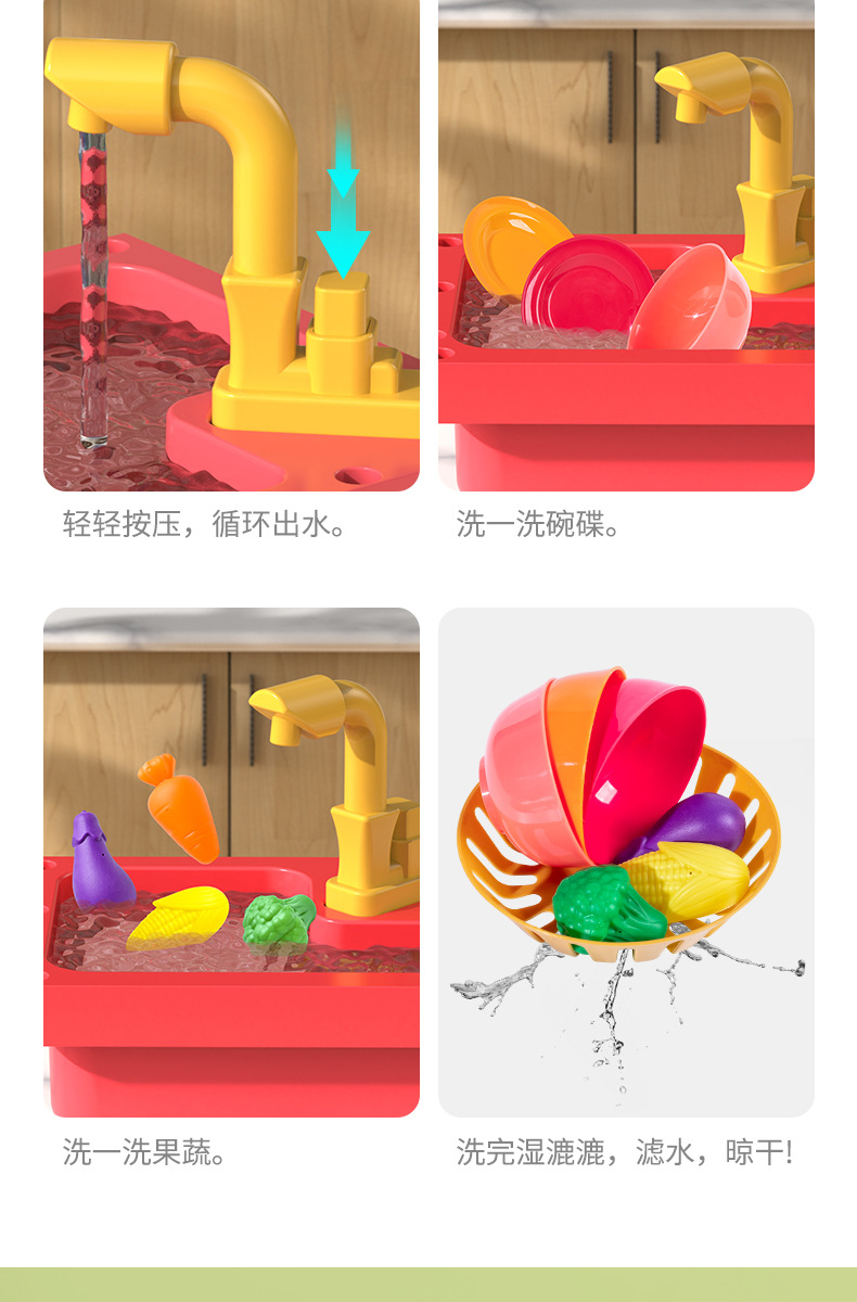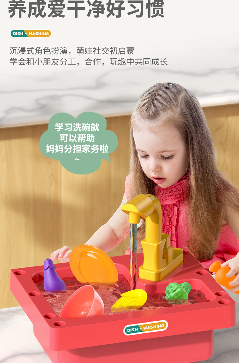 엄선된 어린이 놀이용 식기세척기 장난감 세트, 야채 세척대, 과일 주방, 여자아이, 아기, 2세, 3세용