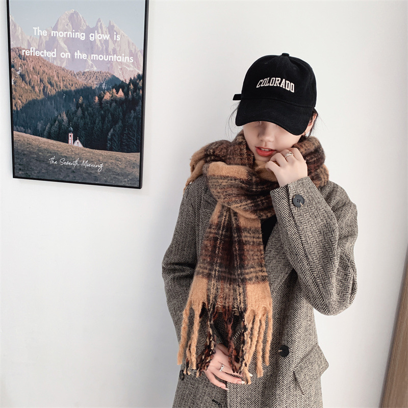 Maillard 스타일 스카프 여성용 가을과 겨울 격자 무늬 스카프 한국식 모든 매치 두꺼운 따뜻한 이중 사용 숄 학생 커피