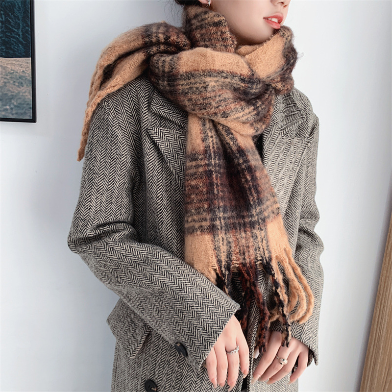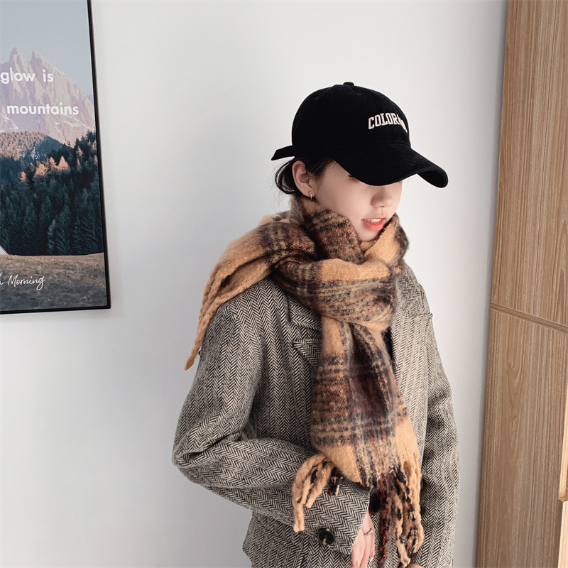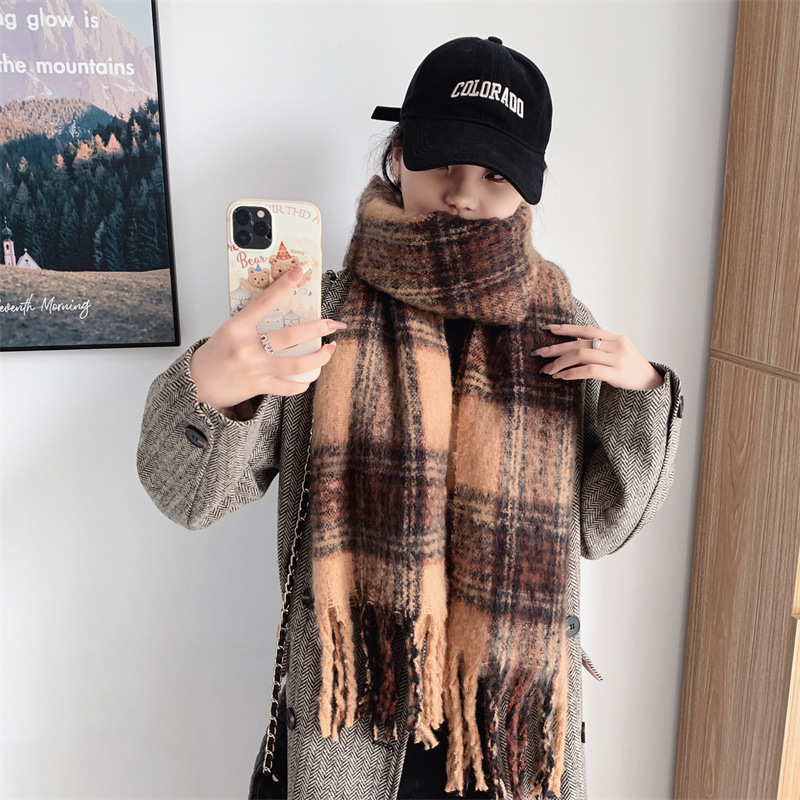 Maillard 스타일 스카프 여성용 가을과 겨울 격자 무늬 스카프 한국식 모든 매치 두꺼운 따뜻한 이중 사용 숄 학생 커피스토어 가기