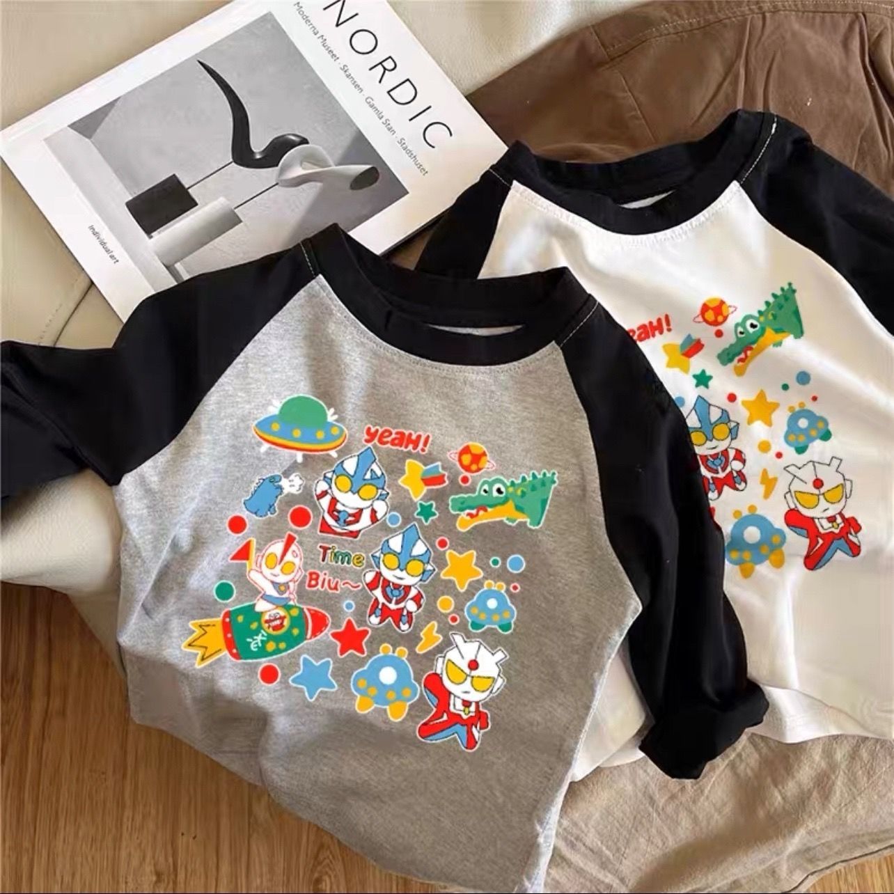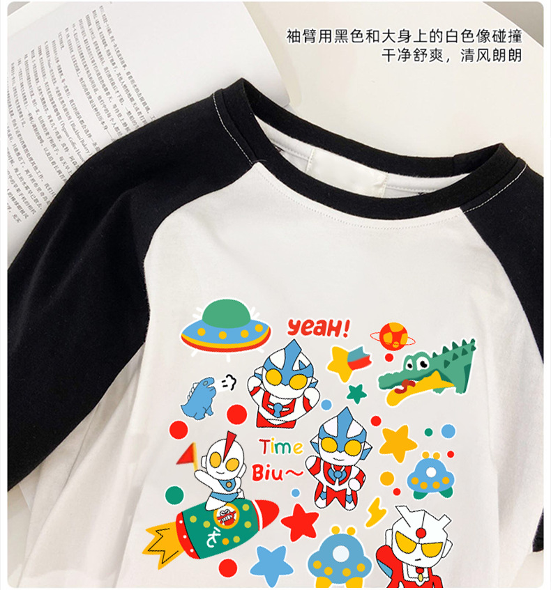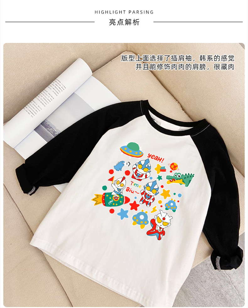 빗질 된 면 어린이 소금에 절인 계란 슈퍼맨 티셔츠 라글란 긴팔 남성 및 여성 아동복 탑 2023 인쇄베이스 셔츠 트렌디스토어 가기