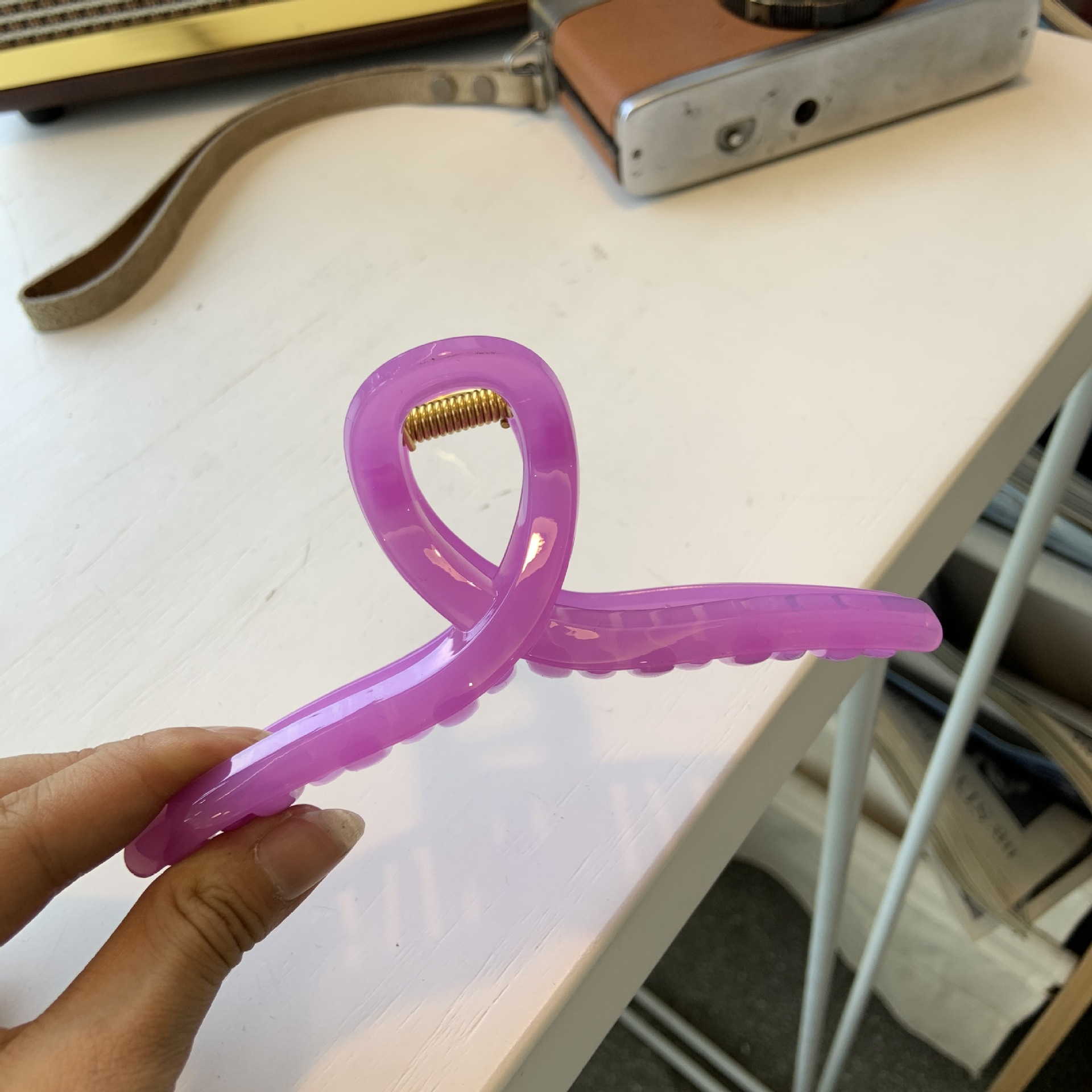 • 투명-보라색 표범무늬-행거-나비버클(약 13cm)