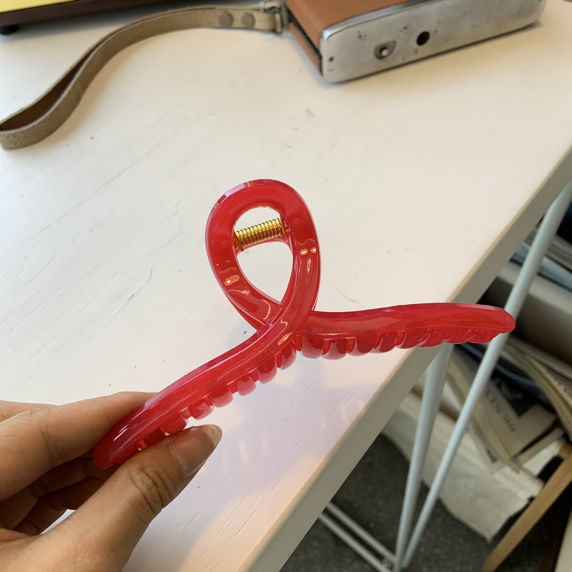 • 글로시한 레드 브라운 행거 나비 버클 (약 13cm)