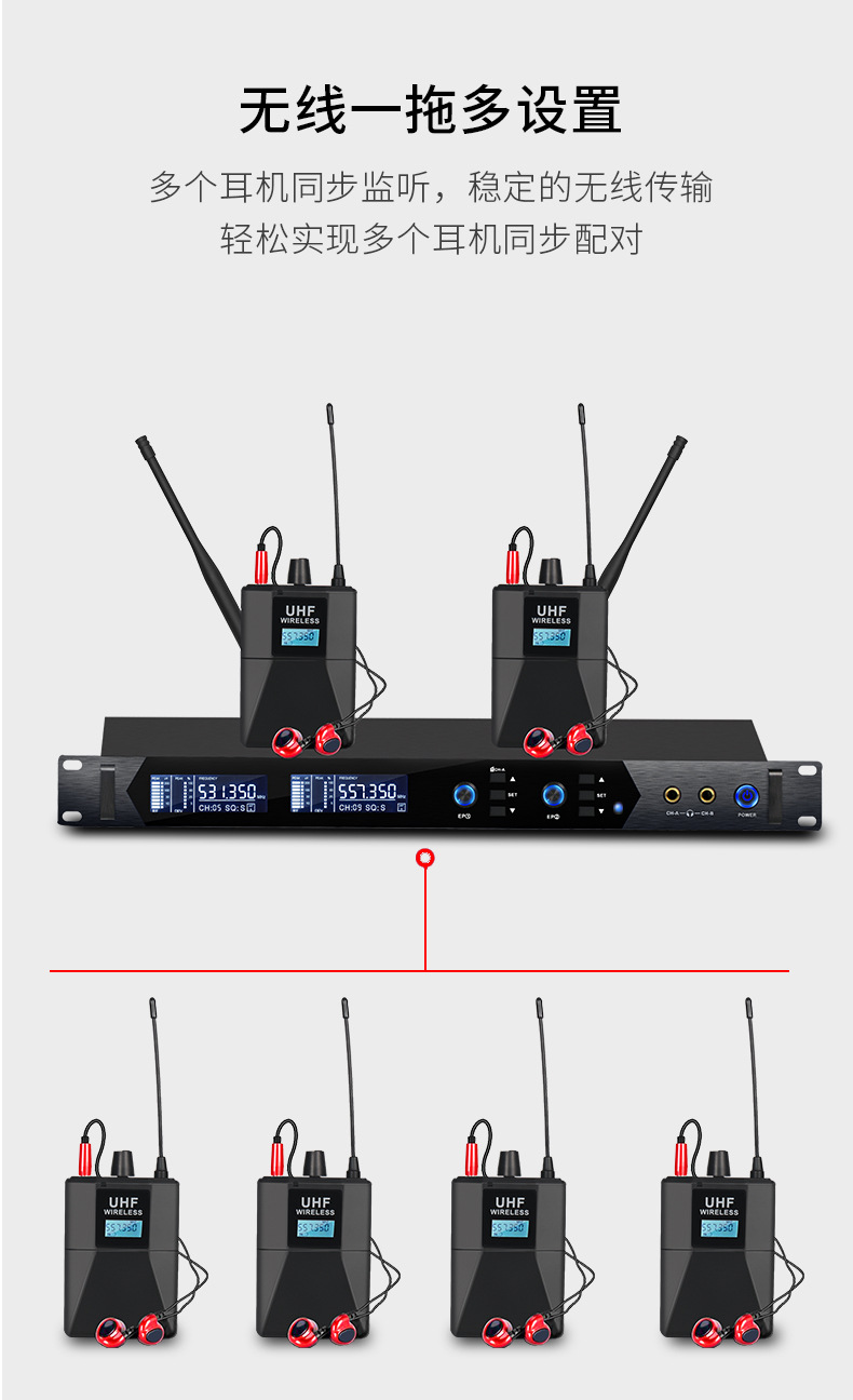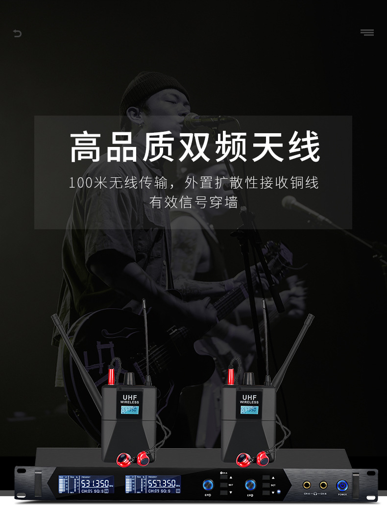 전문 무선 이어 백 모니터 1-4 마이크 마이크 무대 성능 라이브 인이어 듀얼 채널 백 청취스토어 가기