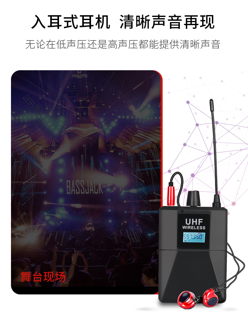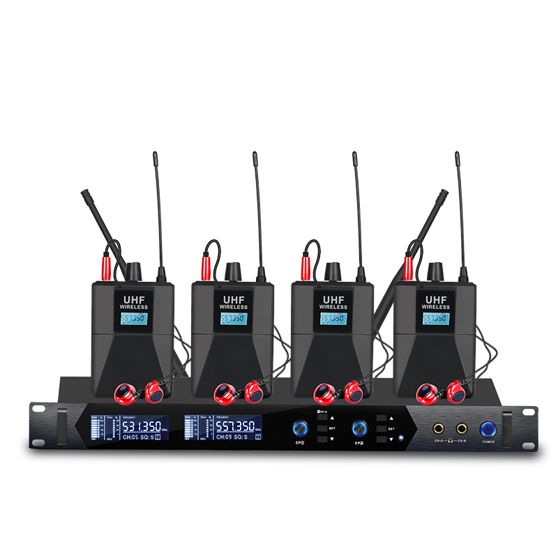 전문 무선 이어 백 모니터 1-4 마이크 마이크 무대 성능 라이브 인이어 듀얼 채널 백 청취