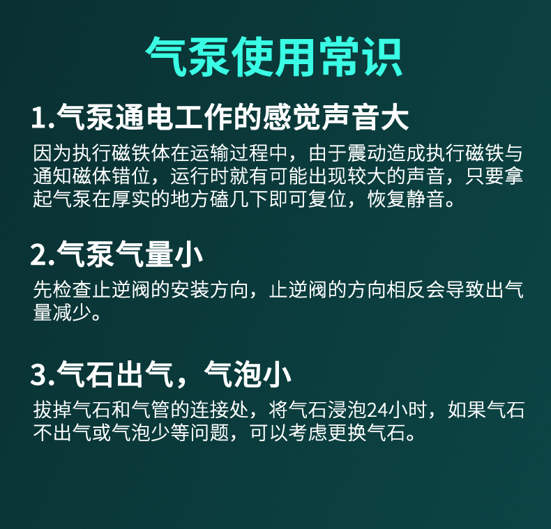 • 5W 이중 구멍 조절 가능한 공기량 + 에어 스톤 패키지