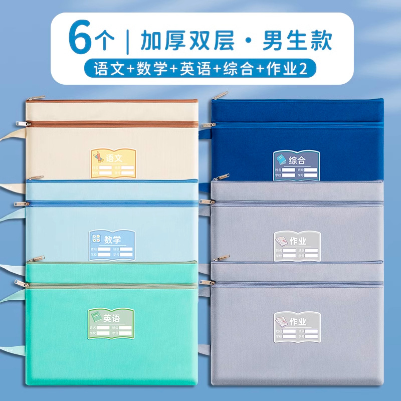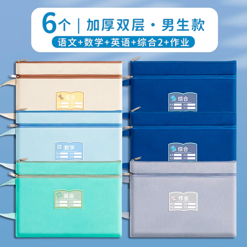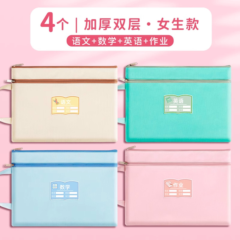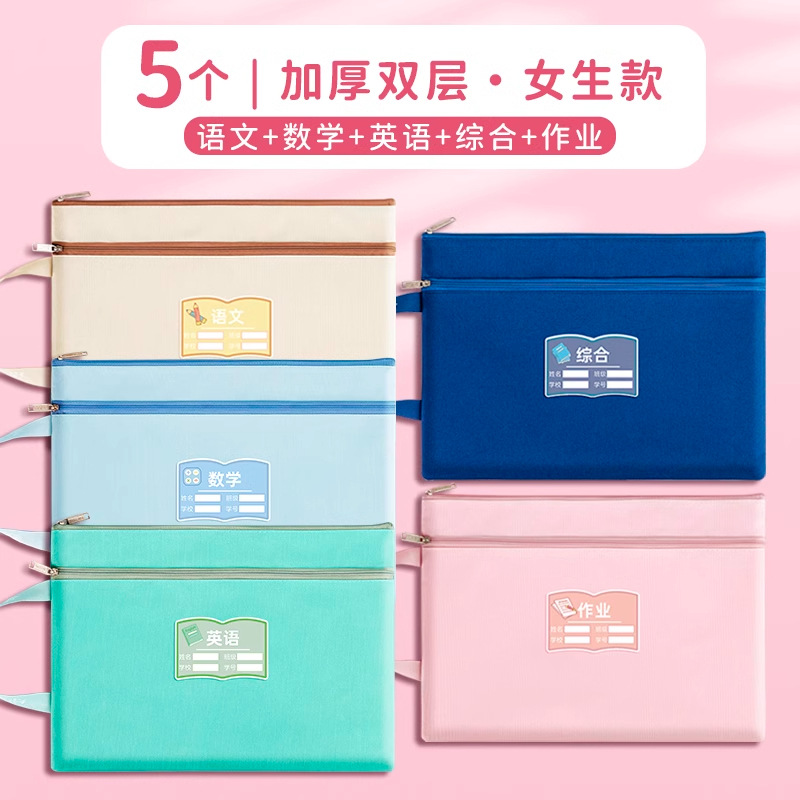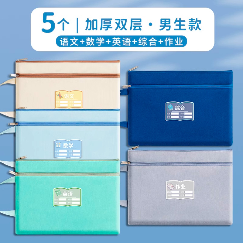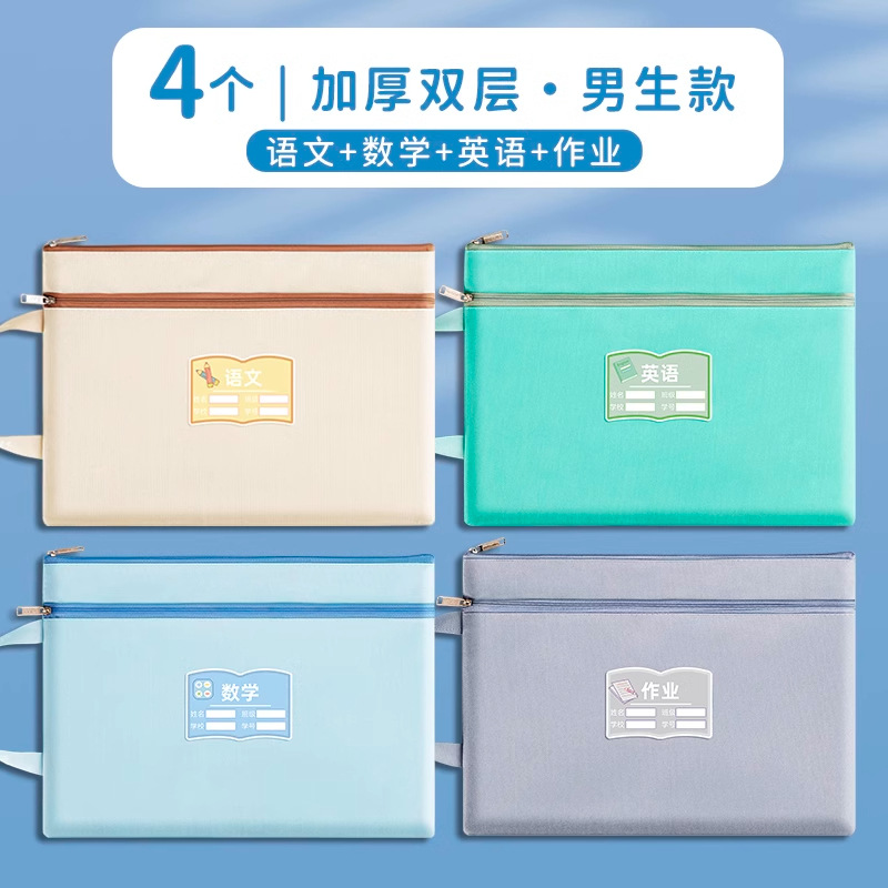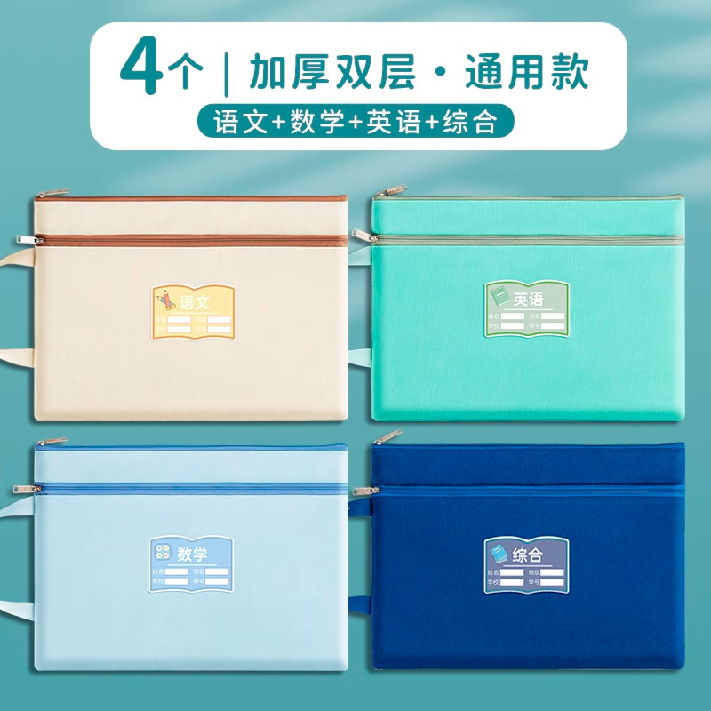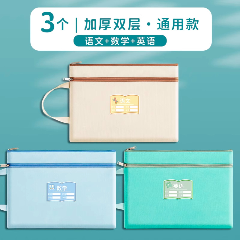 과목 분별 가방 수험지 교과서 보관 가방 a4 캔버스 지퍼형 휴대 과목 언어 · 수학 · 영어 2 중 문서 가방