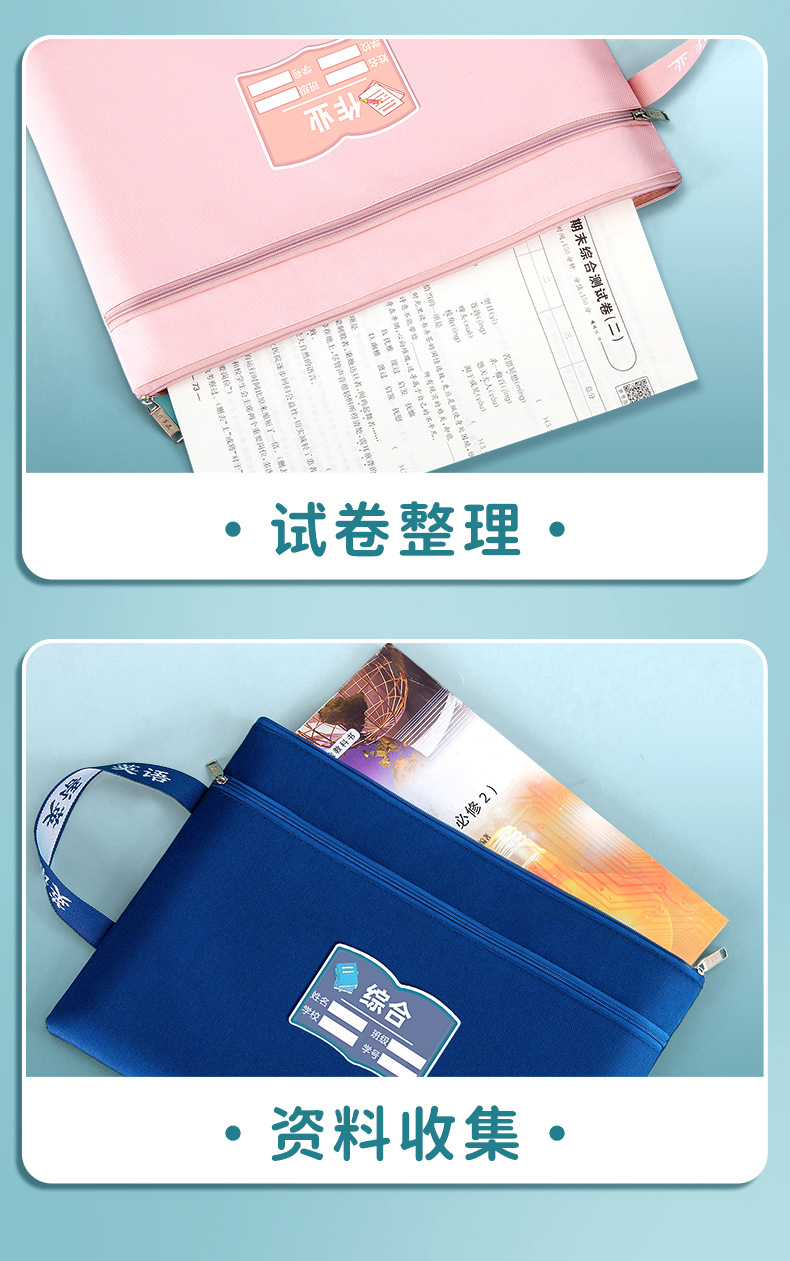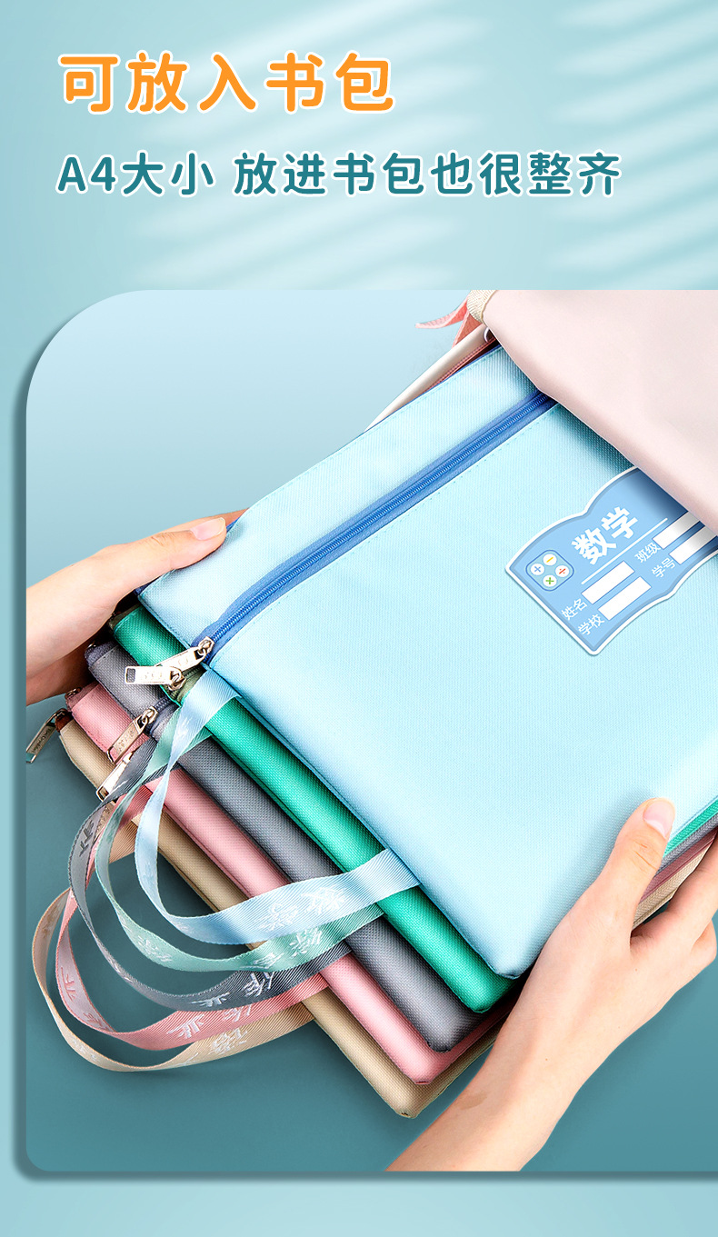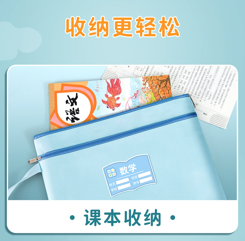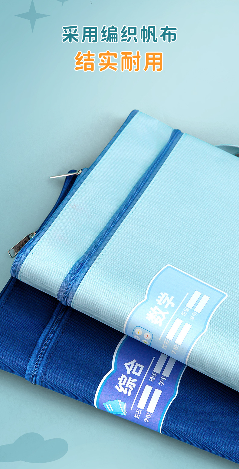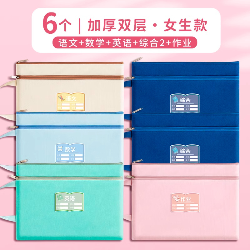 과목 분별 가방 수험지 교과서 보관 가방 a4 캔버스 지퍼형 휴대 과목 언어 · 수학 · 영어 2 중 문서 가방