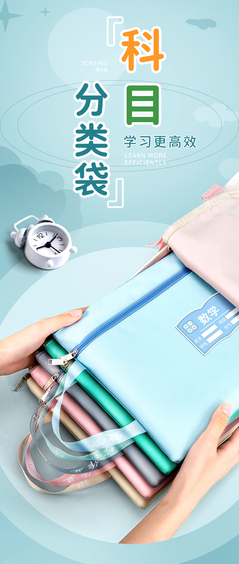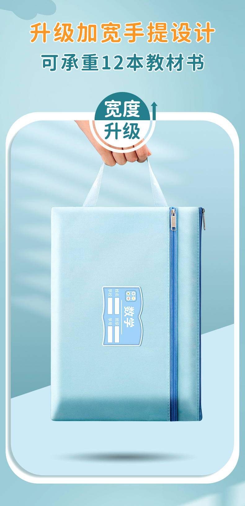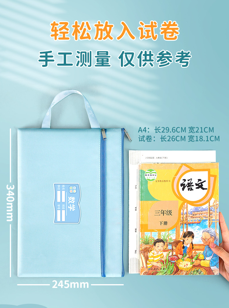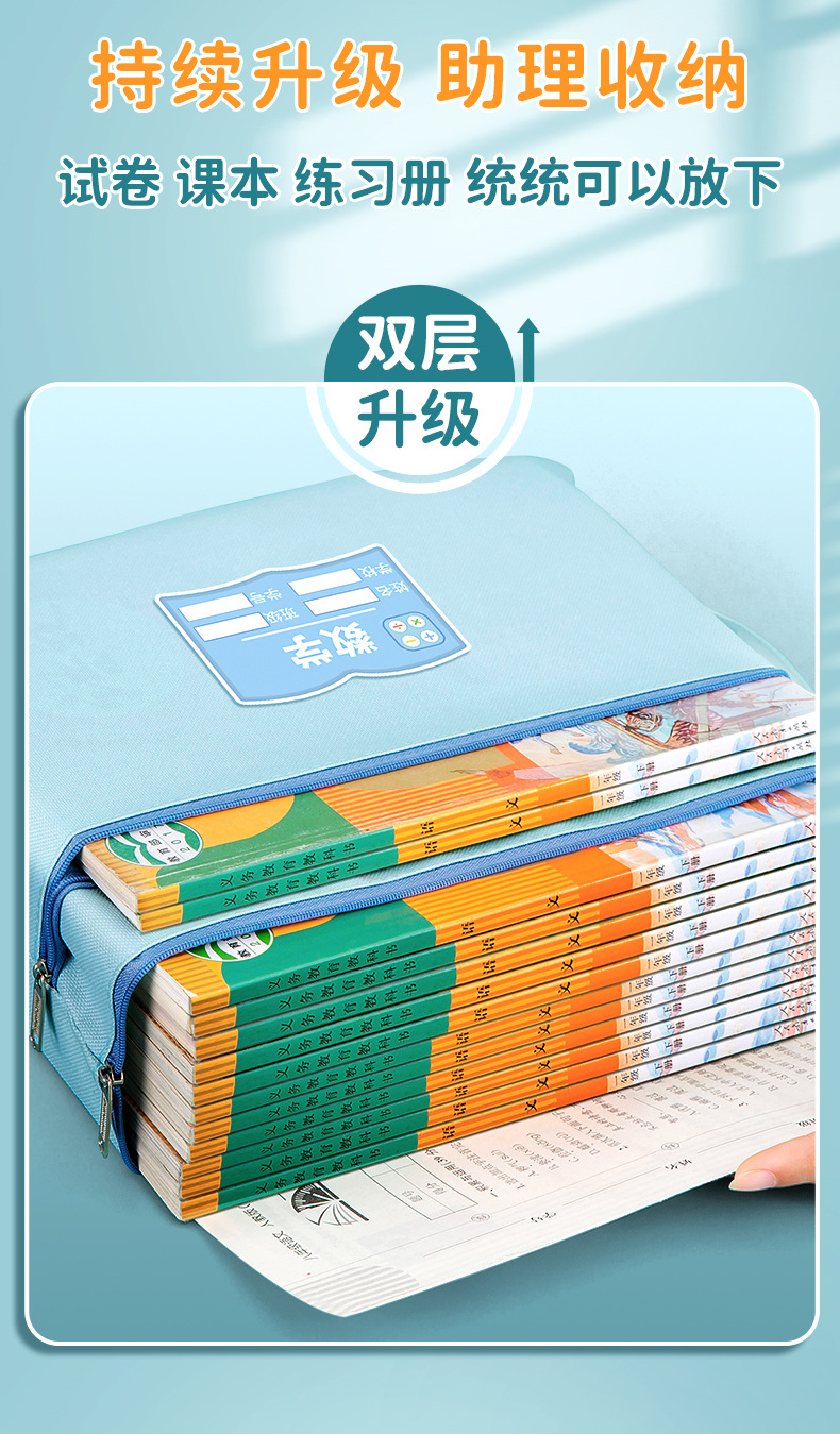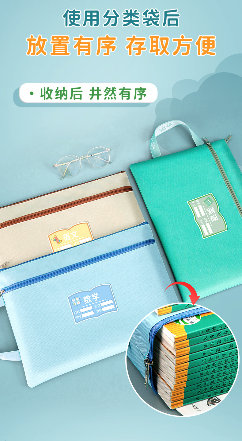 과목 분별 가방 수험지 교과서 보관 가방 a4 캔버스 지퍼형 휴대 과목 언어 · 수학 · 영어 2 중 문서 가방