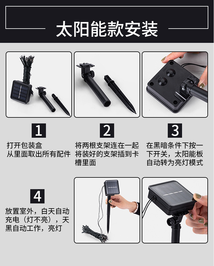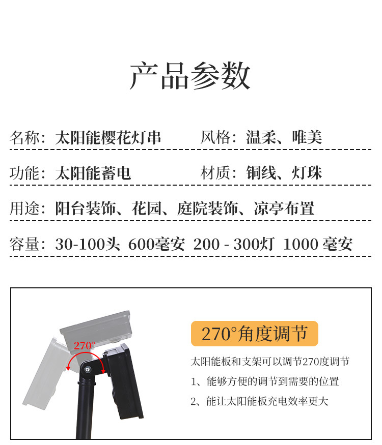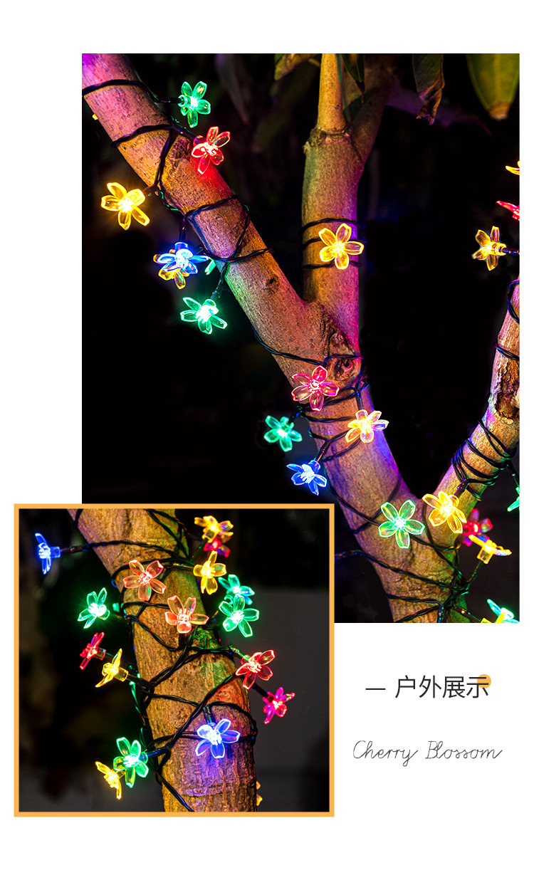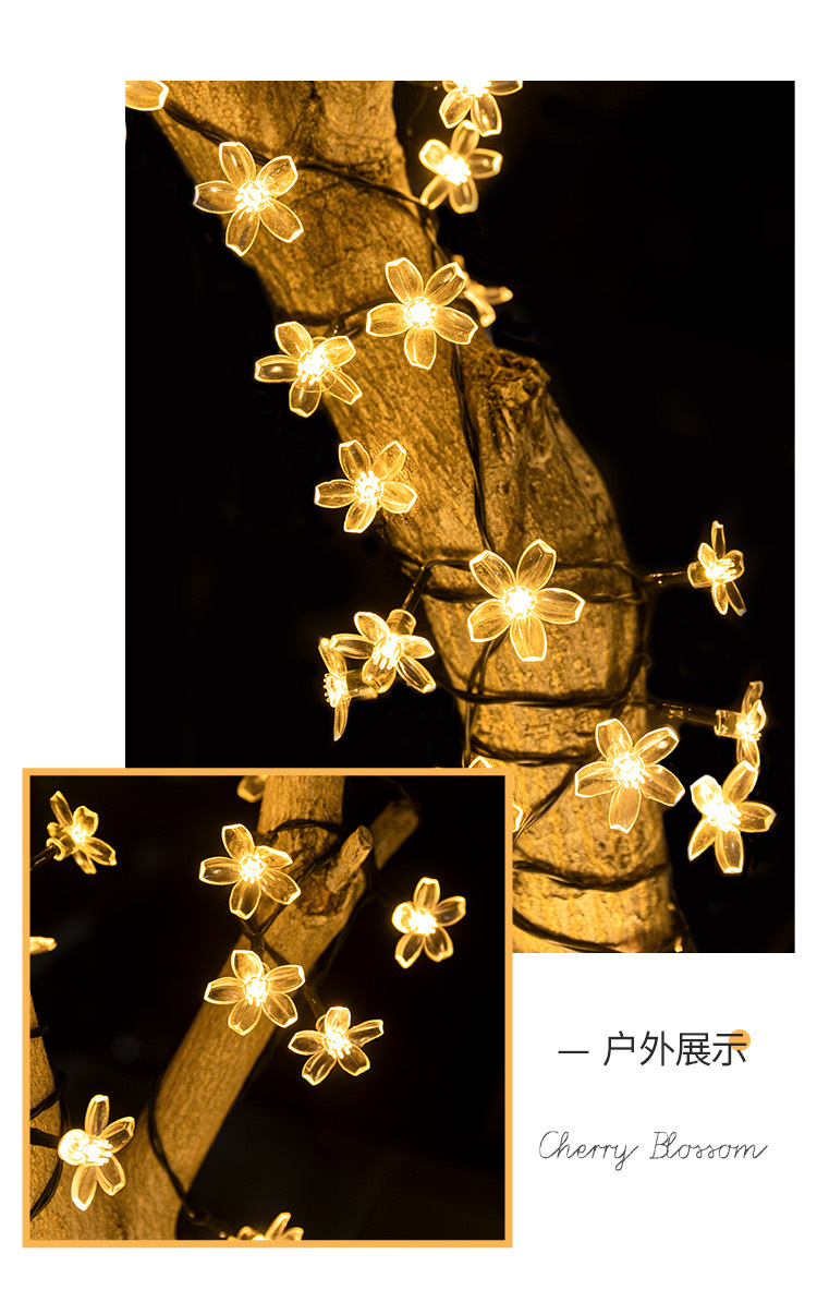 벚꽃 태양 끈 조명 야외 방수 안뜰 정원 발코니 장식 캠핑 교수형 나무 분위기 led 조명