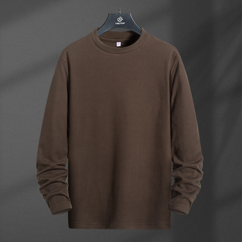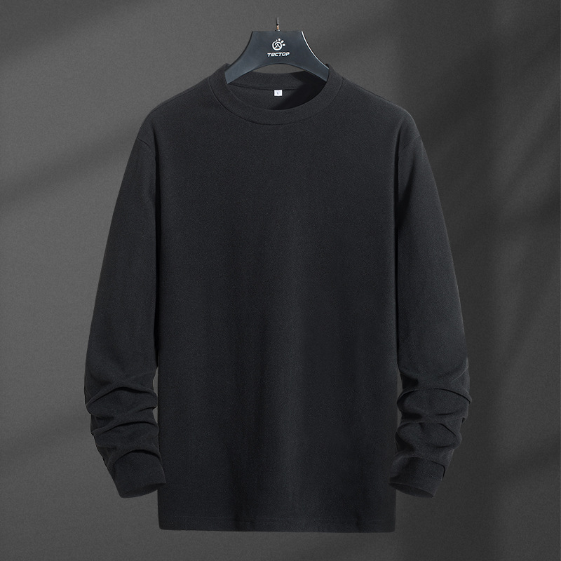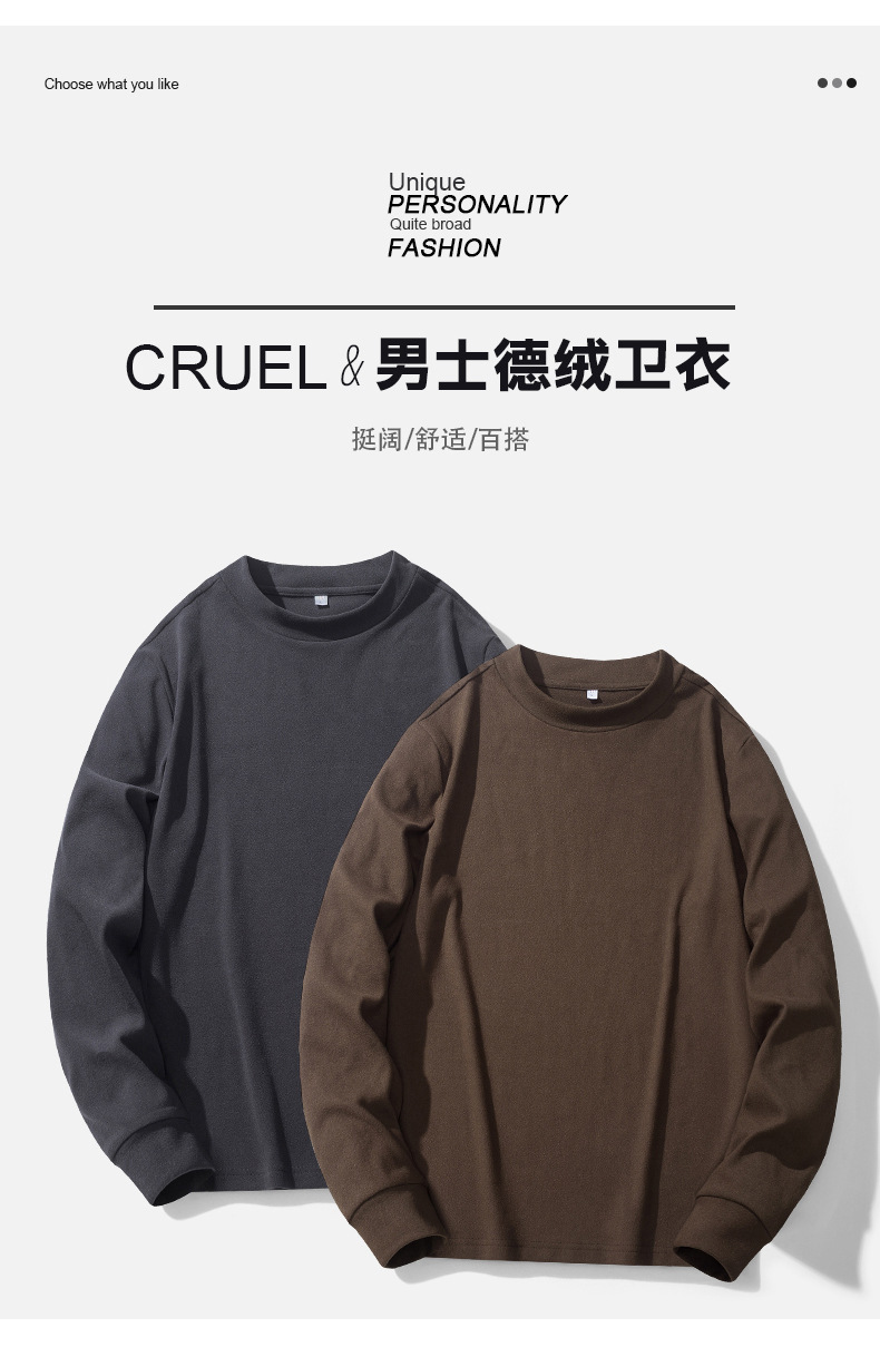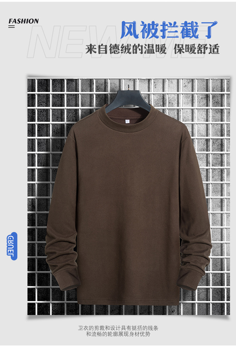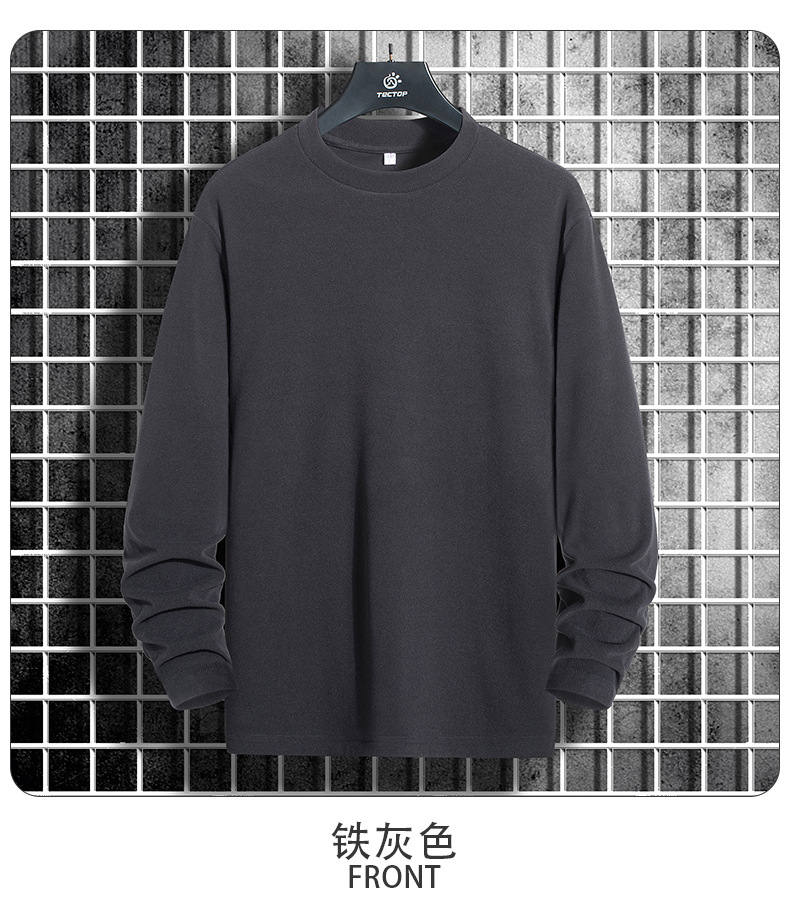 양면 벨벳 티셔츠 남성용 긴팔 2023 겨울 따뜻한 내부 기모 베이스 셔츠 크루넥 단색 탑 트렌디스토어 가기