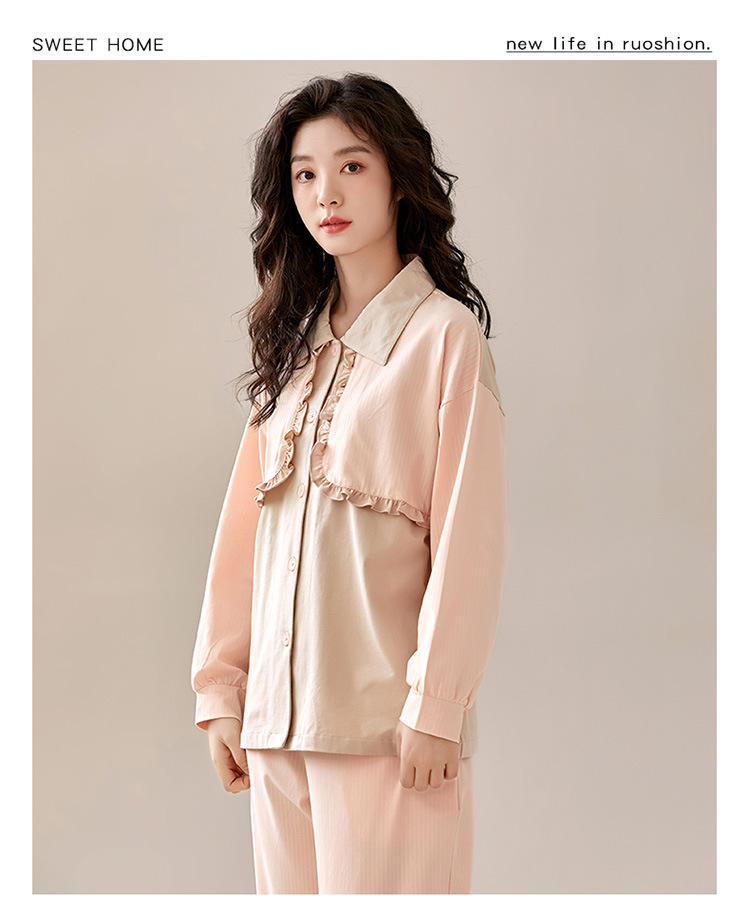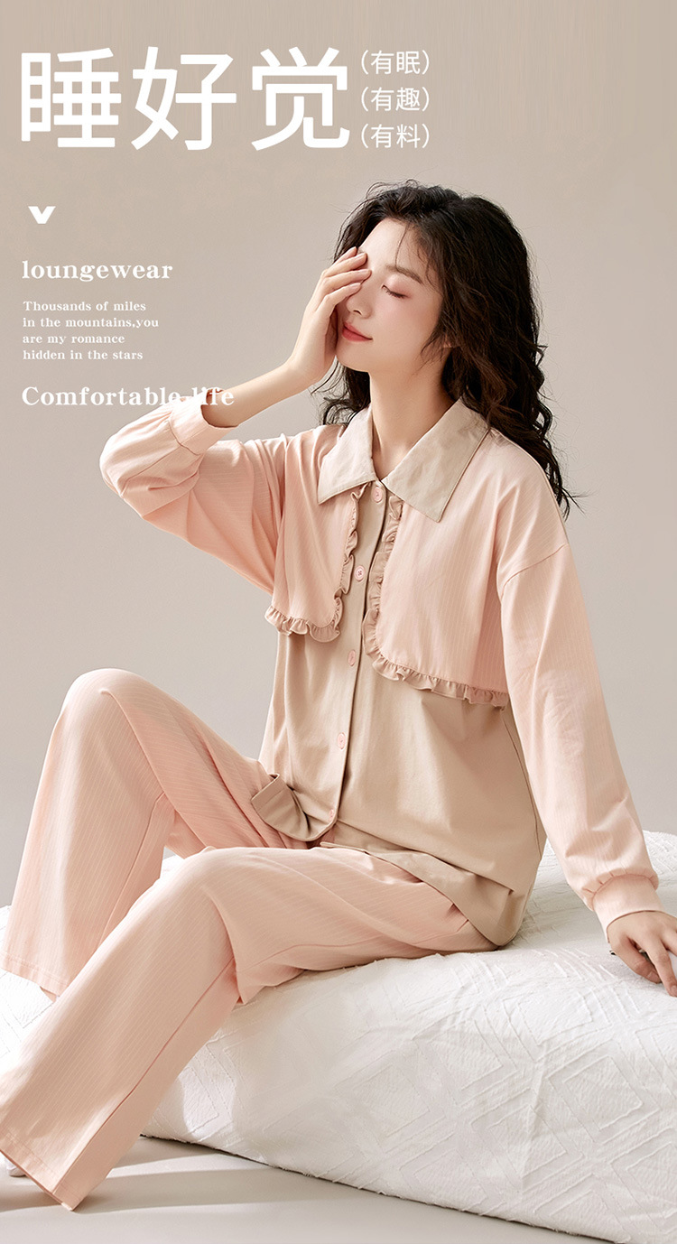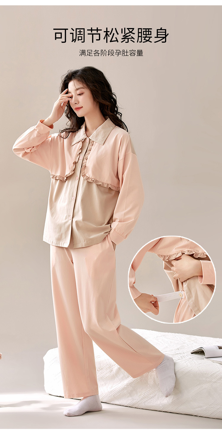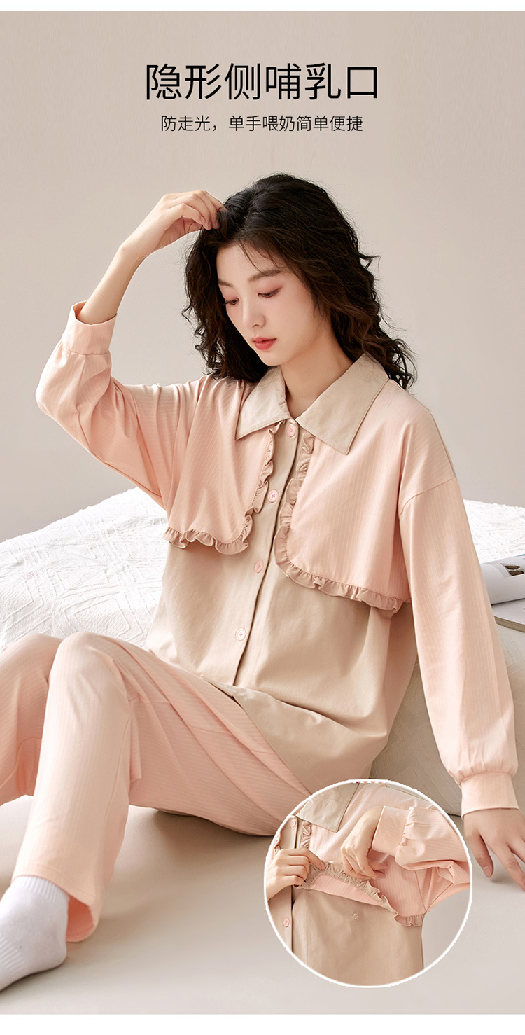 새로운 가을과 겨울 여성 잠옷 5a 항균 월간 옷 산후 가디건 긴 소매 풀업 면 플러스 사이즈 홈 투피스 세트스토어 가기