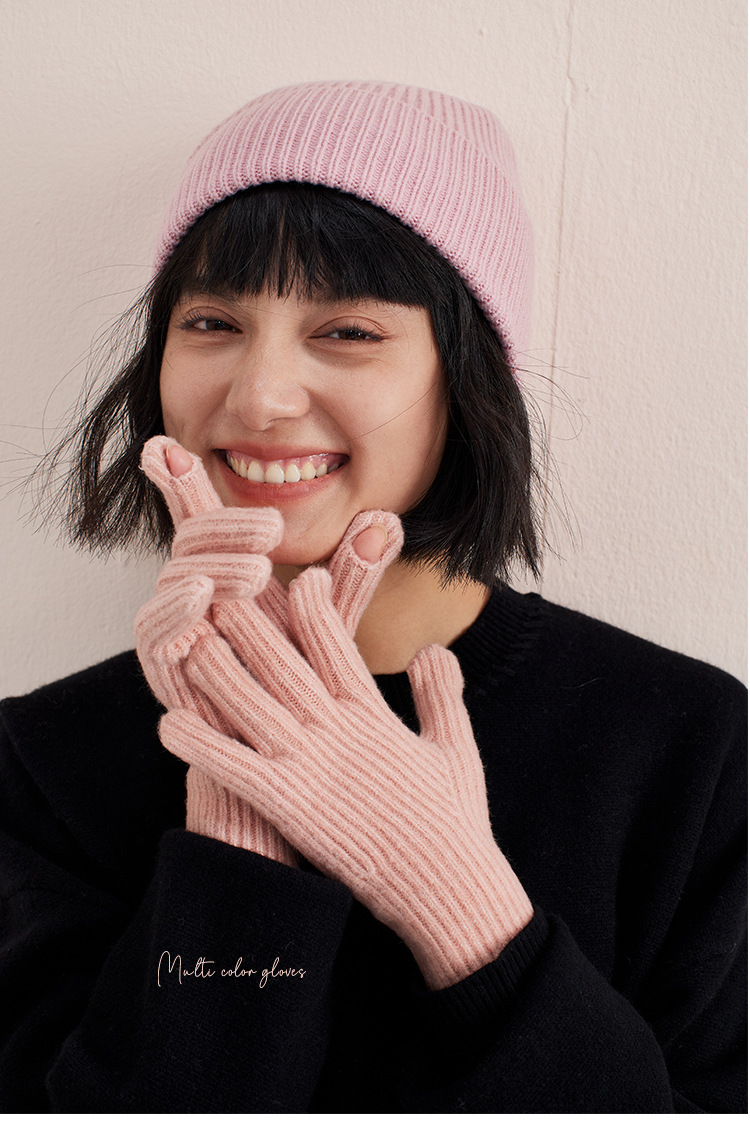한국 맞춤형 세탁기로 세탁 가능한 양모 혼합 터치 스크린 장갑 겨울 전기 자전거 타기 니트 두꺼운 따뜻한 여성스토어 가기