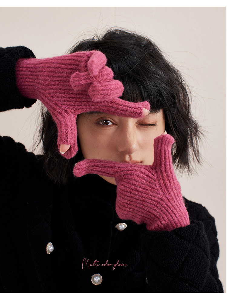한국 맞춤형 세탁기로 세탁 가능한 양모 혼합 터치 스크린 장갑 겨울 전기 자전거 타기 니트 두꺼운 따뜻한 여성