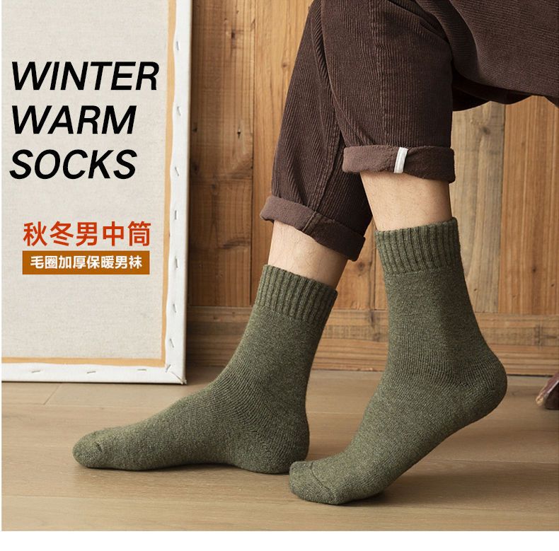 양말 남성 스타킹 겨울 따뜻한 두꺼운 기모 양말 남성용 중간 배럴 블랙 테리 겨울 높은 배럴 긴 배럴 냄새 방지
