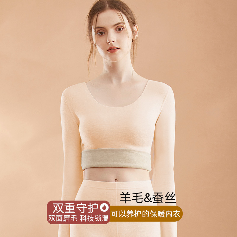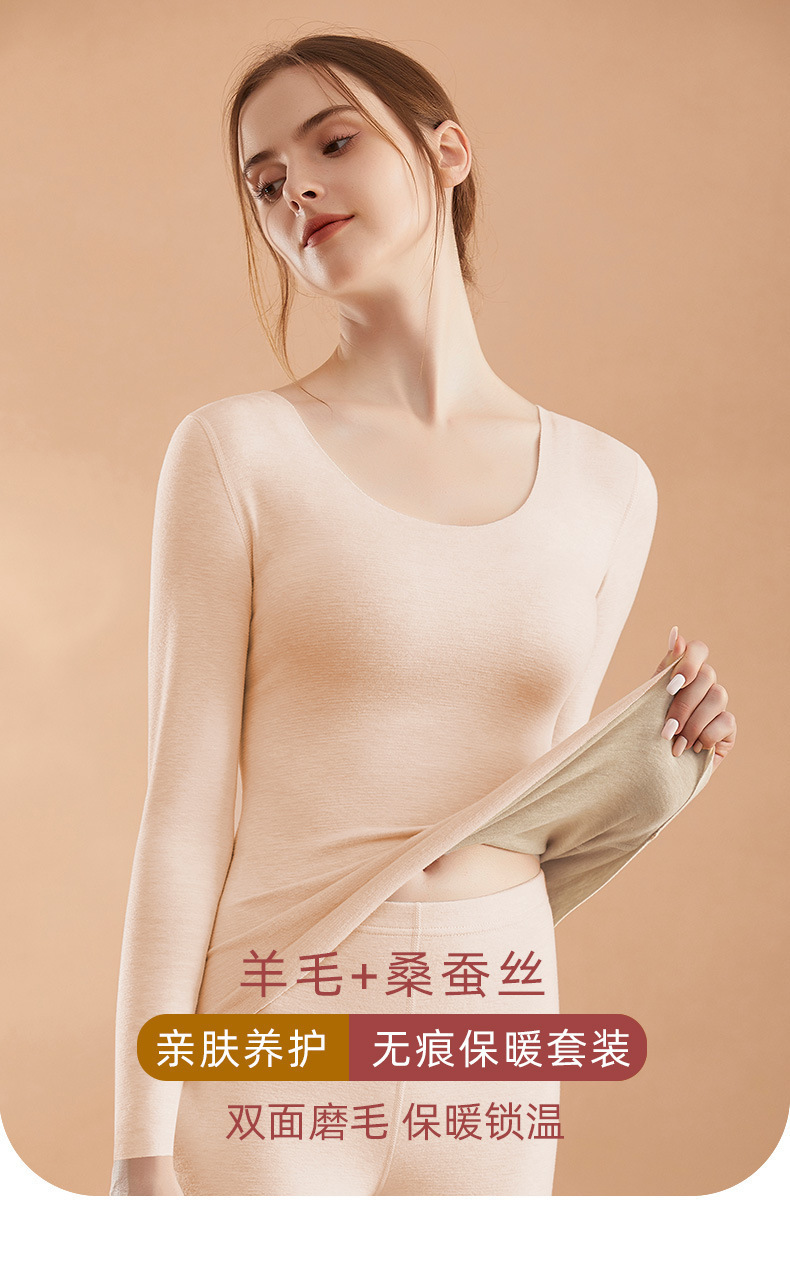 가을과 겨울 울 실크 따뜻한 세트 원활한 슬림 핏 비 팽창 베이스 난방 기모 두꺼운 따뜻한 여성