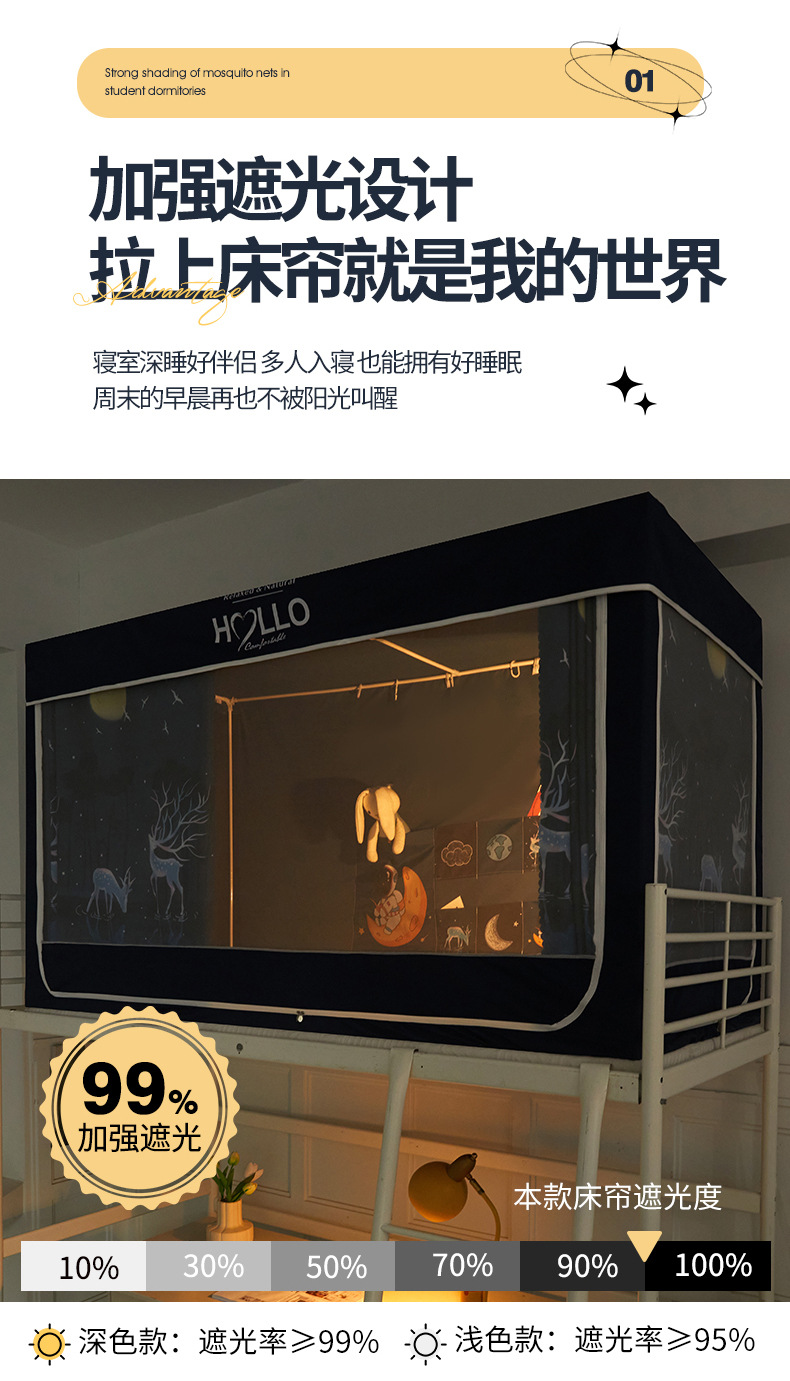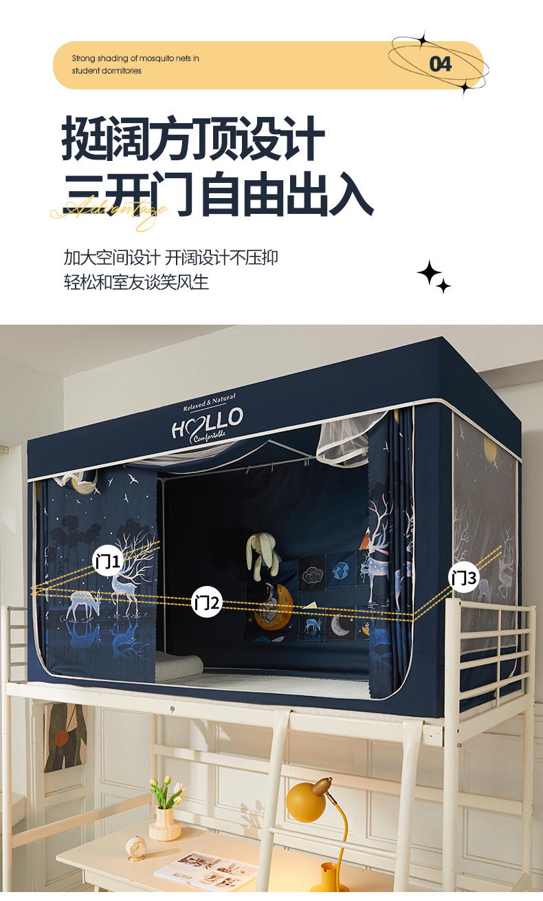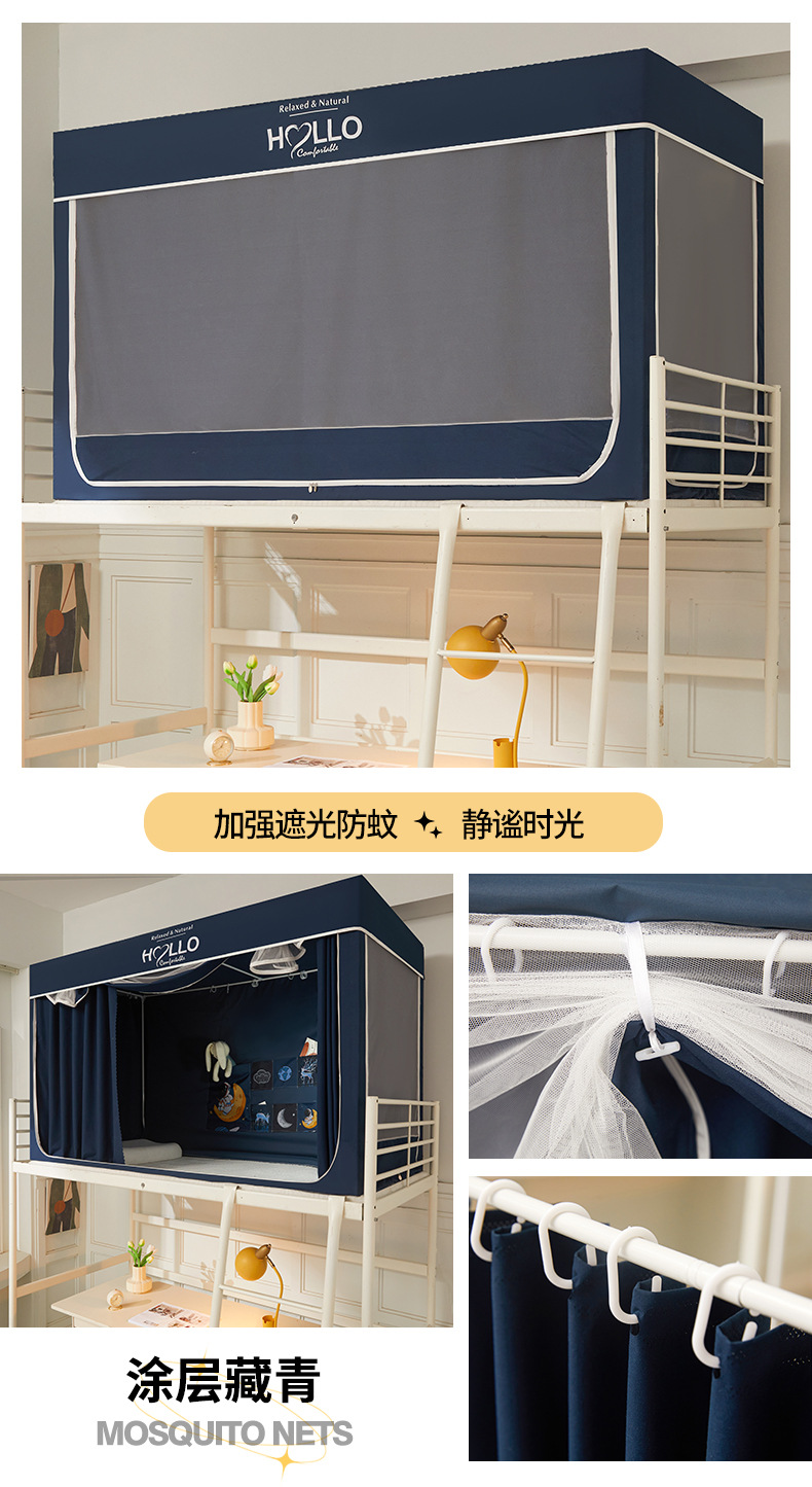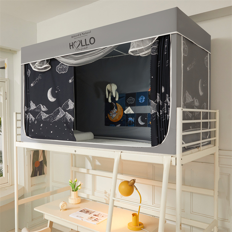 학생 모기장 상하부 이층 3 도어 강한 차광 디지털 인쇄 그물 원사 기숙사 침대 커튼 코팅 차광 커튼