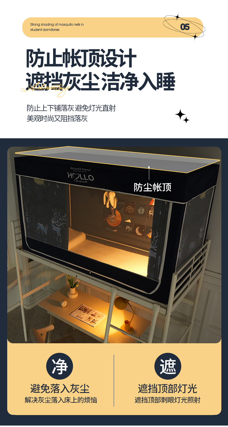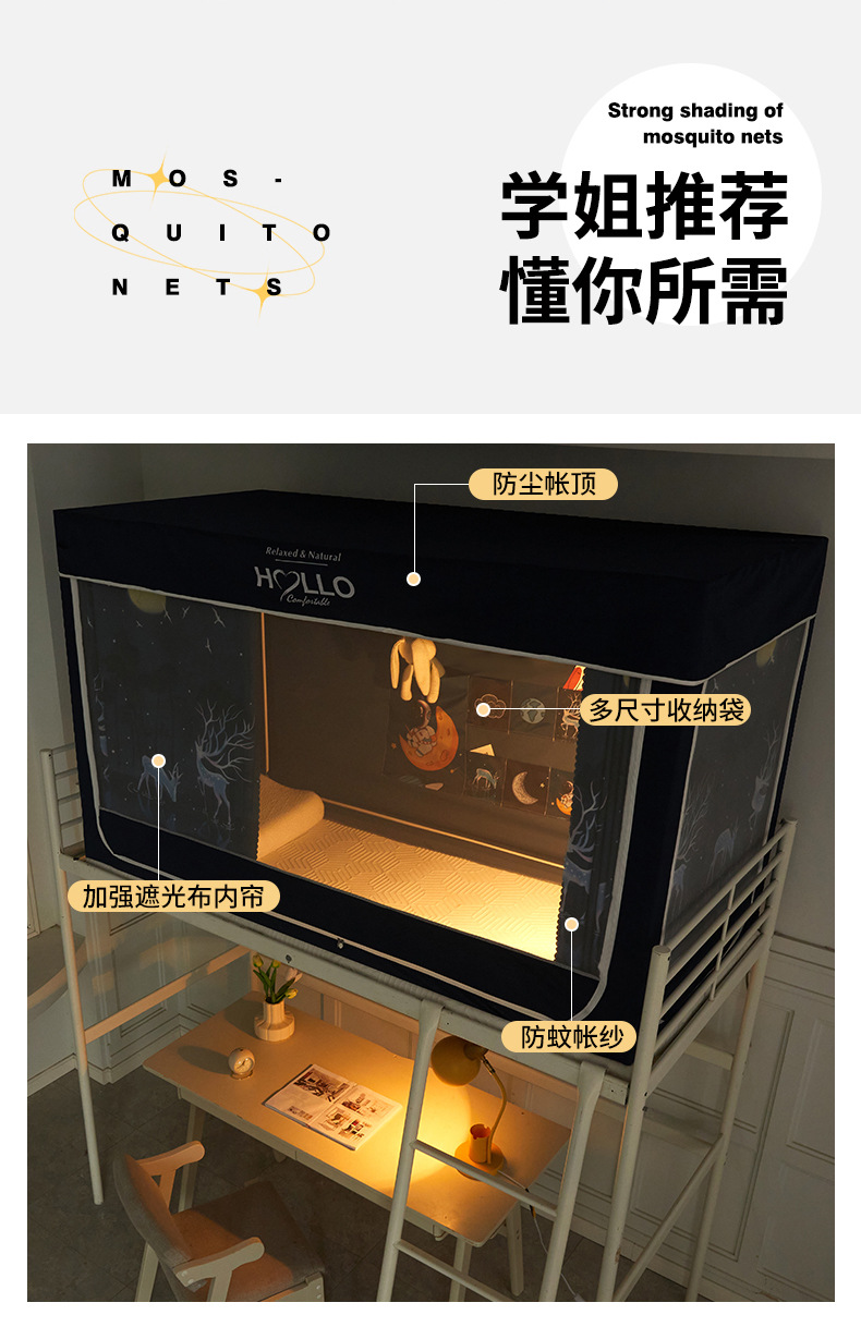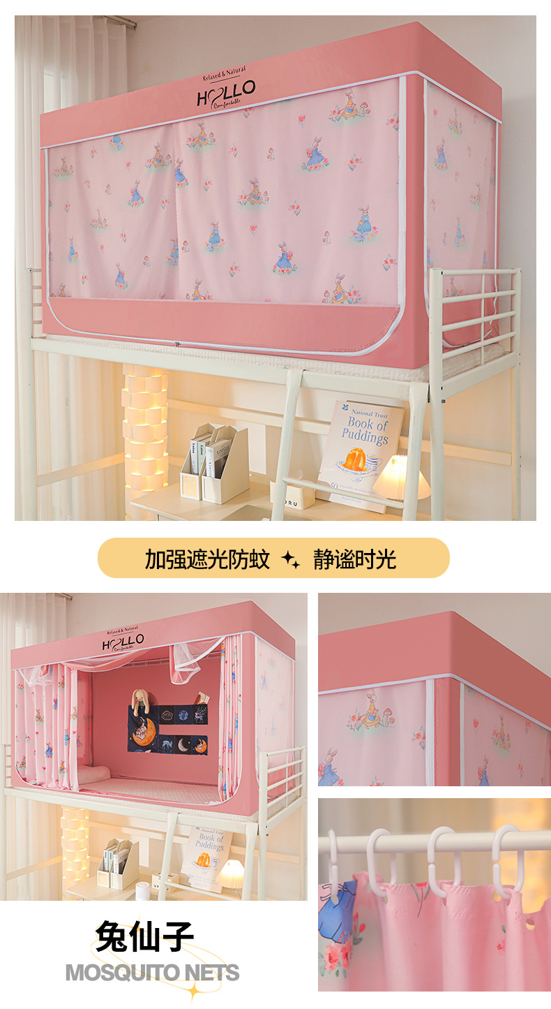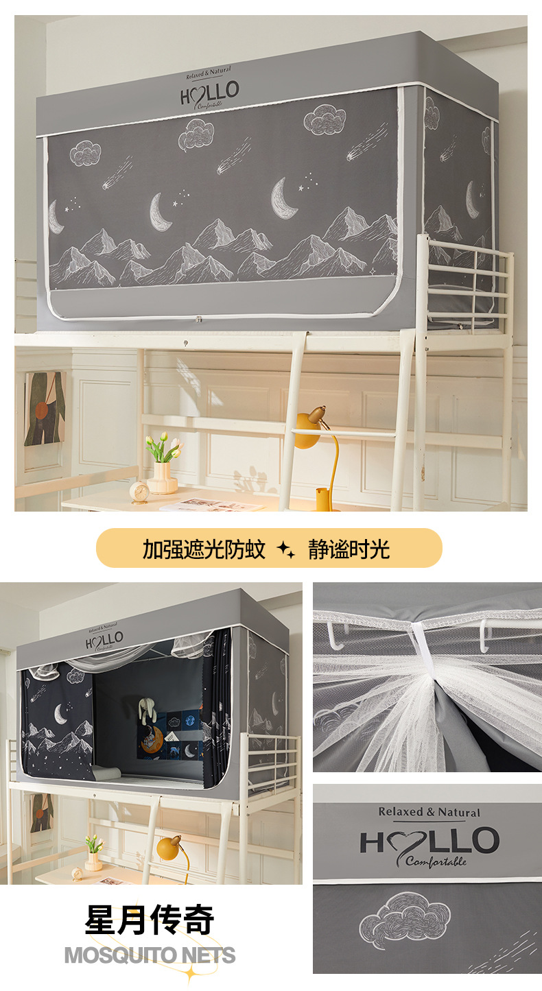 학생 모기장 상하부 이층 3 도어 강한 차광 디지털 인쇄 그물 원사 기숙사 침대 커튼 코팅 차광 커튼