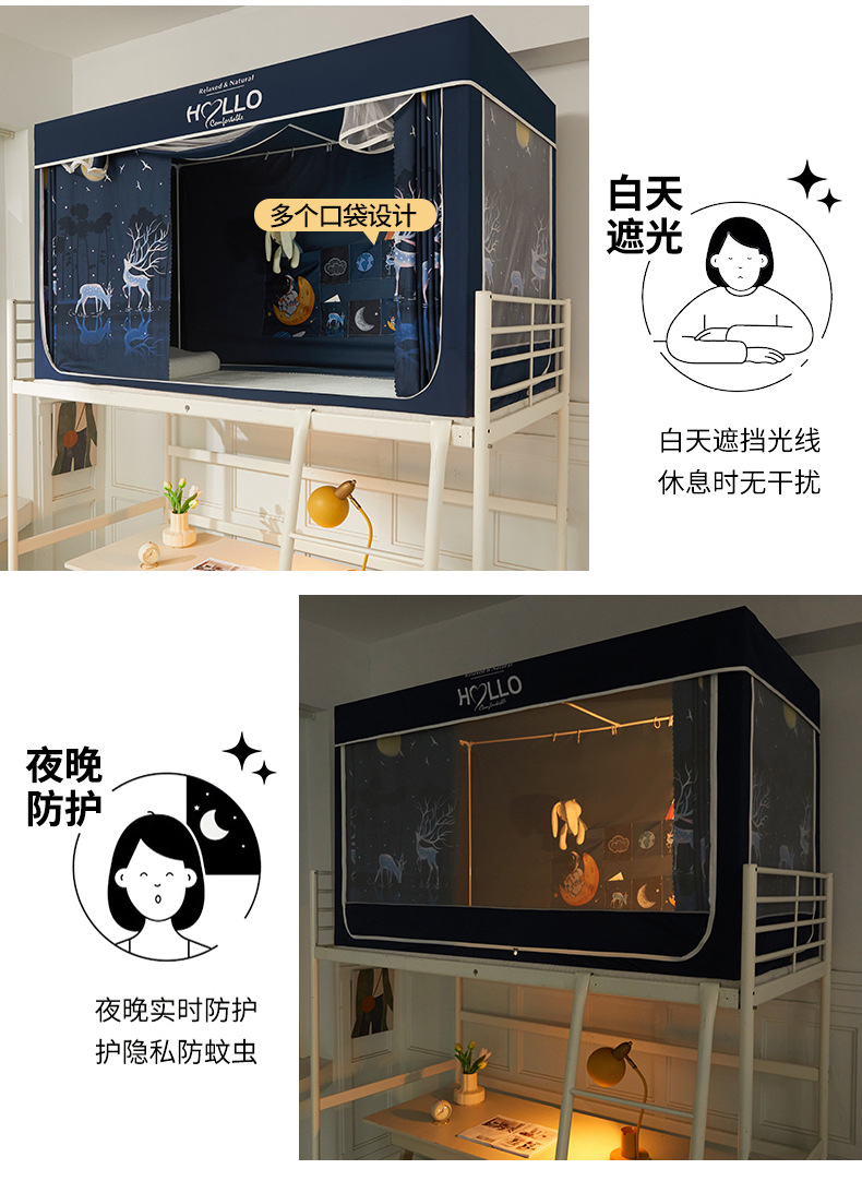 학생 모기장 상하부 이층 3 도어 강한 차광 디지털 인쇄 그물 원사 기숙사 침대 커튼 코팅 차광 커튼스토어 가기