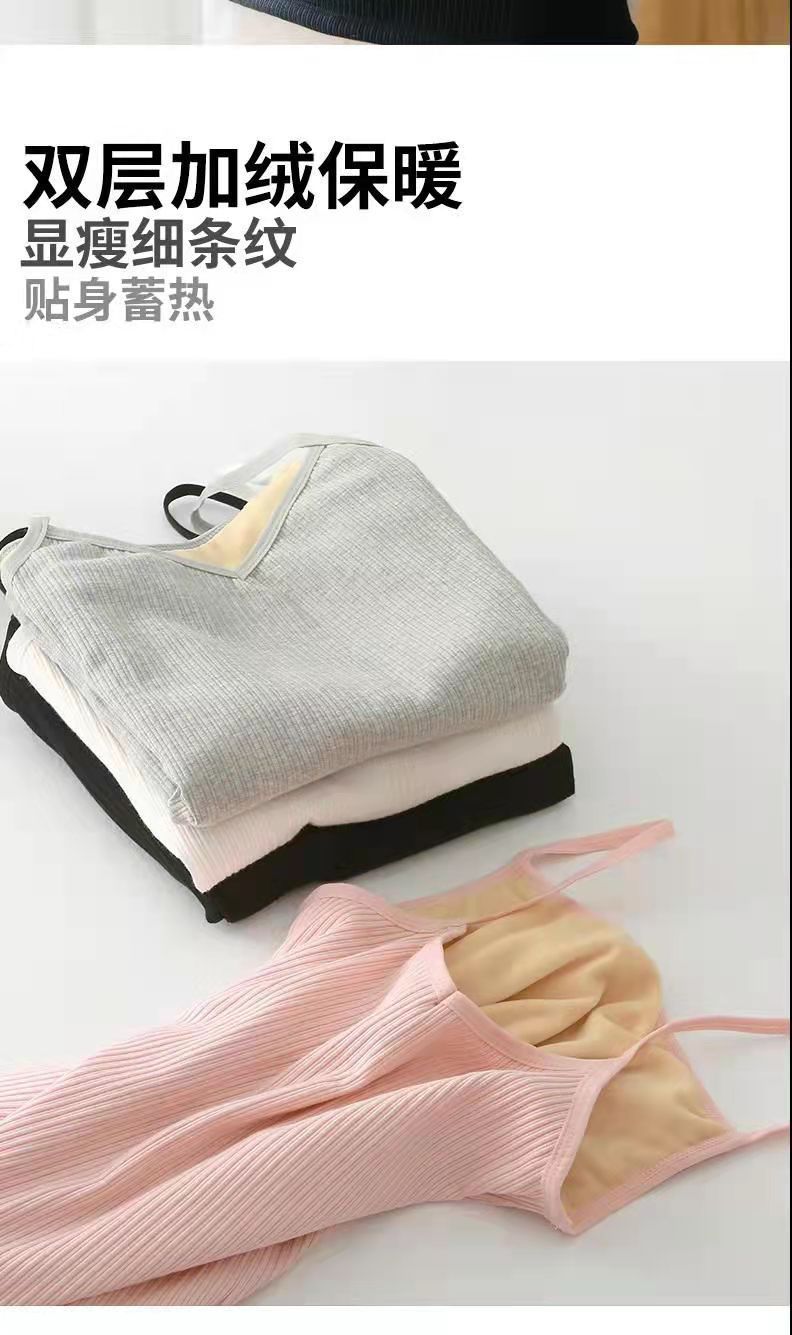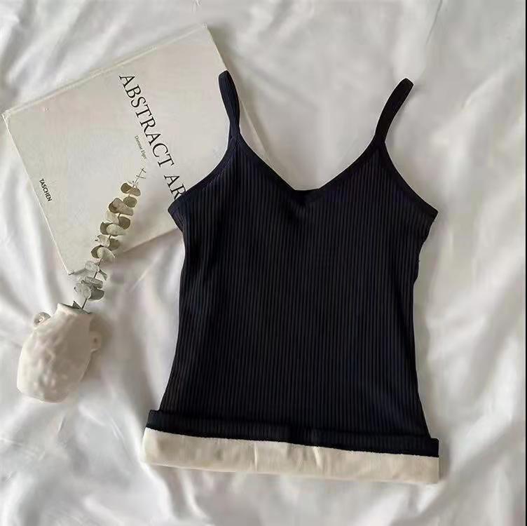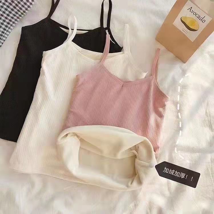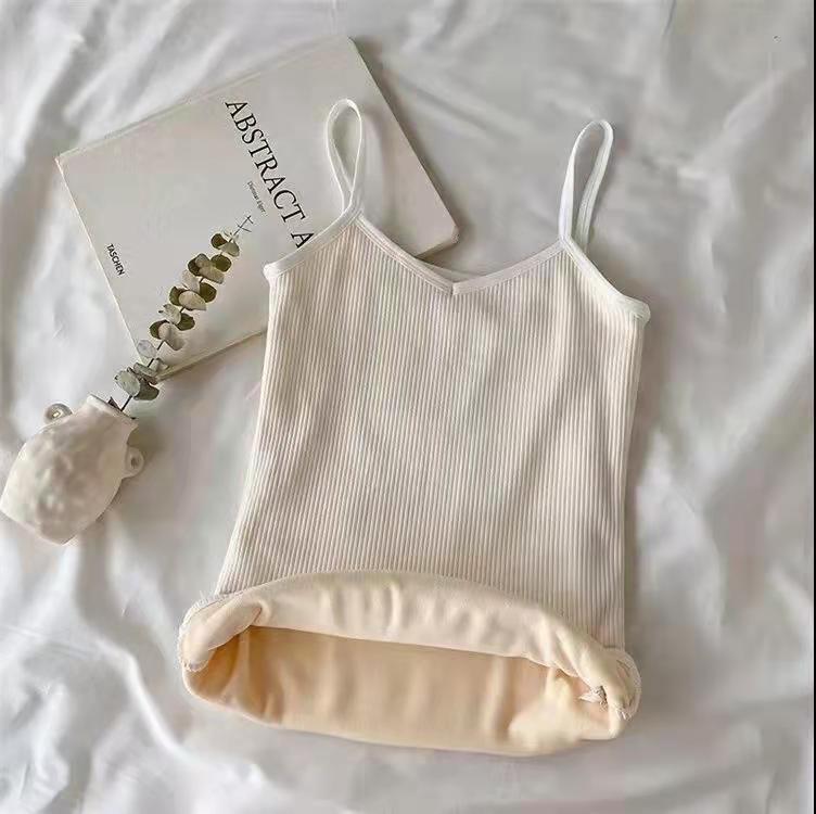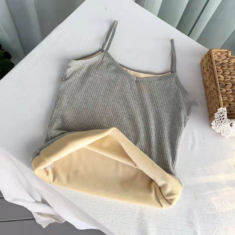 가을과 겨울 따뜻한 슬링 여성용 기모 두꺼운베이스 탑 솔리드 컬러 면 슬림핏 여성용 모든 매치 민소매 내부 조끼스토어 가기