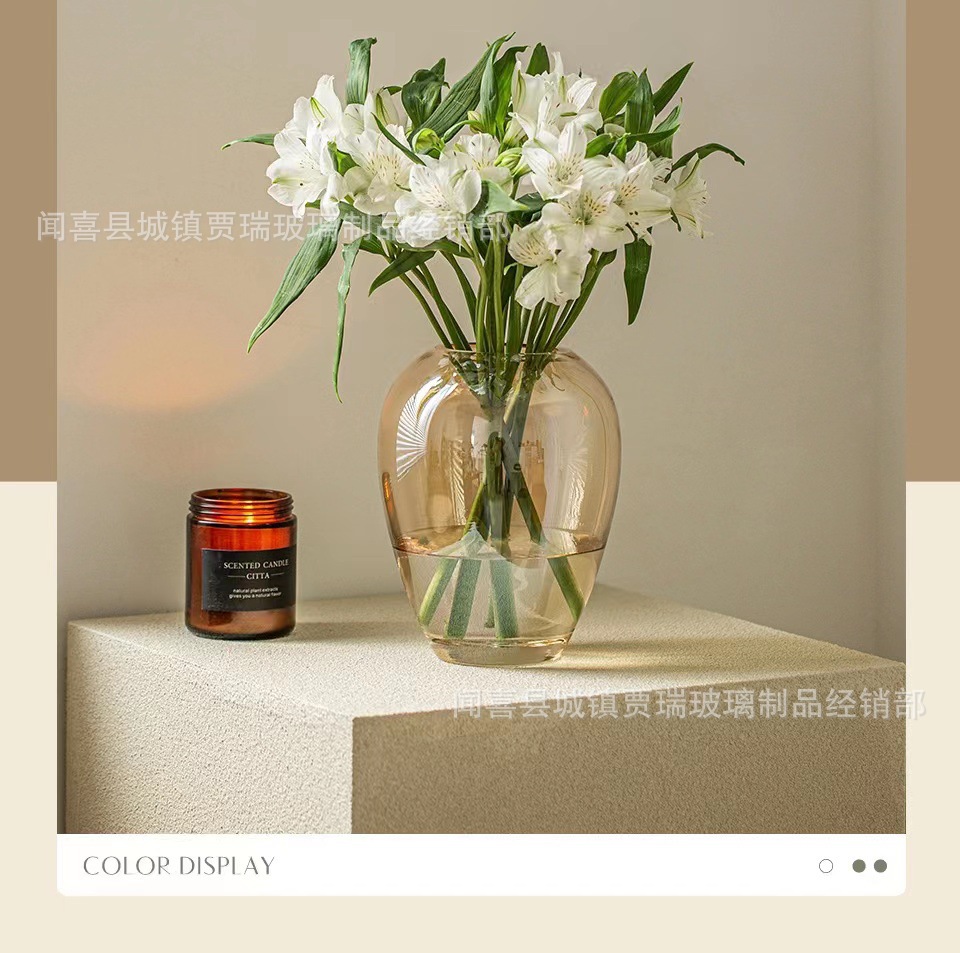꽃병 장식품 거실 꽃꽂이 투명 유리 그물 붉은 백합 꽃 장미 수경 테이블 높은 감각스토어 가기