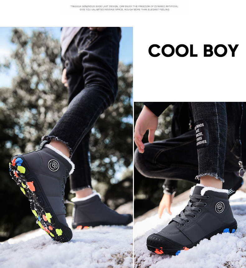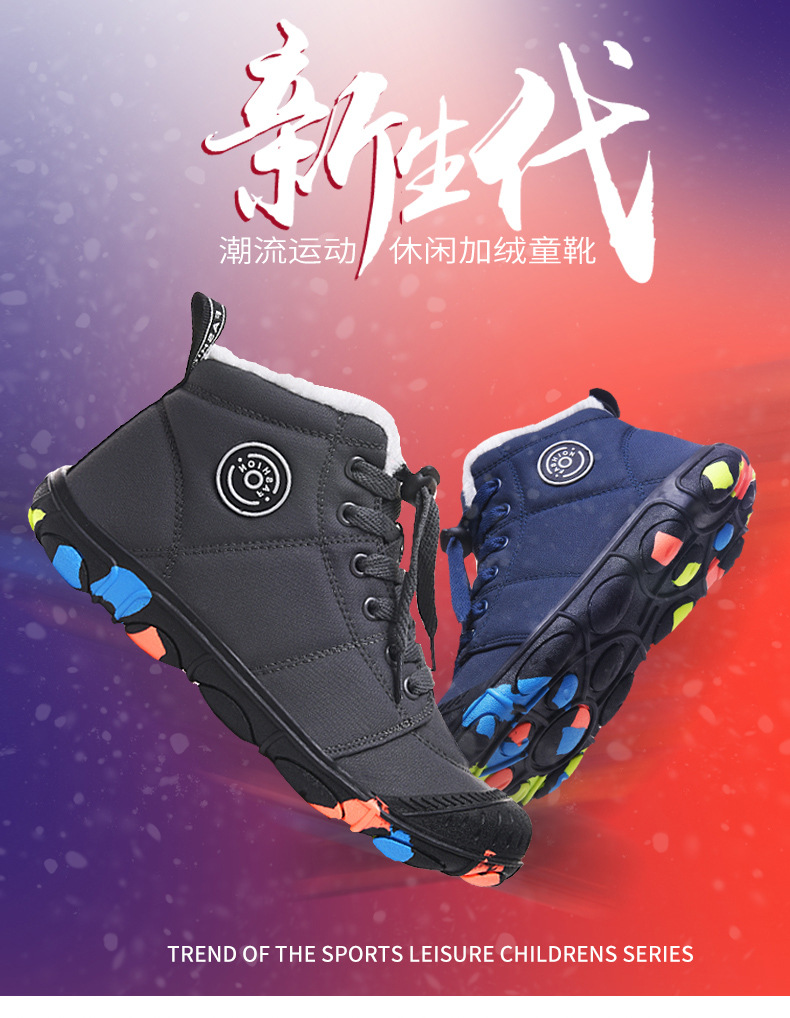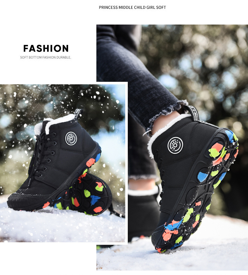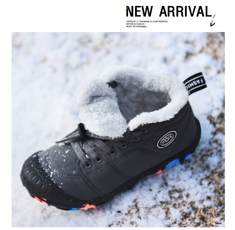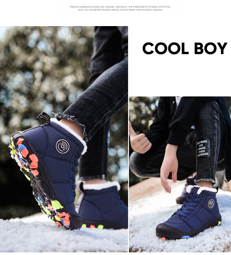 새로운 야외 어린이 신발 소년 면 부츠 어린이 기모 두꺼운 따뜻한 면 신발 방수 중간 및 대형 어린이 부츠 소녀를위한