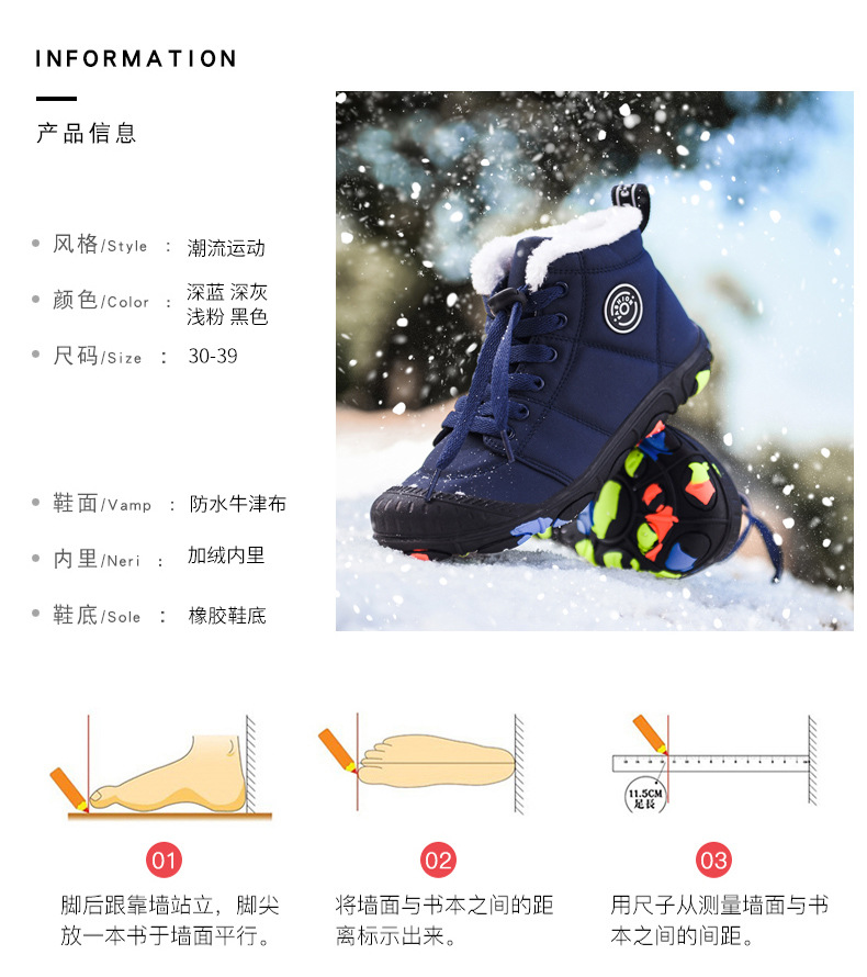 새로운 야외 어린이 신발 소년 면 부츠 어린이 기모 두꺼운 따뜻한 면 신발 방수 중간 및 대형 어린이 부츠 소녀를위한스토어 가기