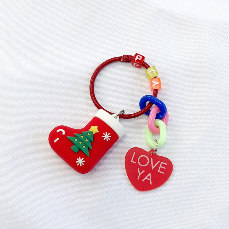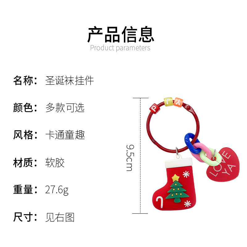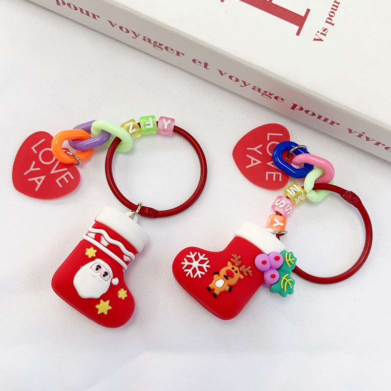 새로운 귀여운 크리스마스 양말 실리콘 만화 교수형 체인 열쇠 고리 창조적 인 가방 교수형 장식품 작은 선물 자동차 액세서리