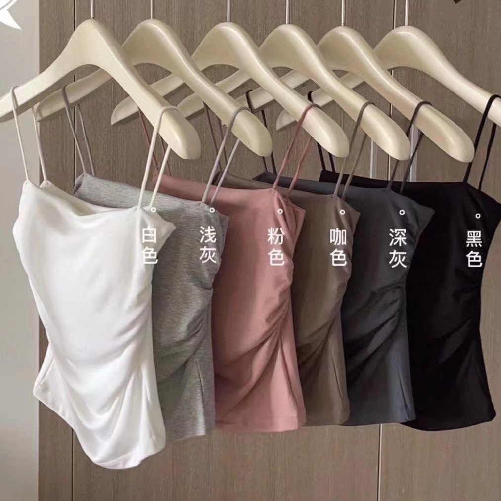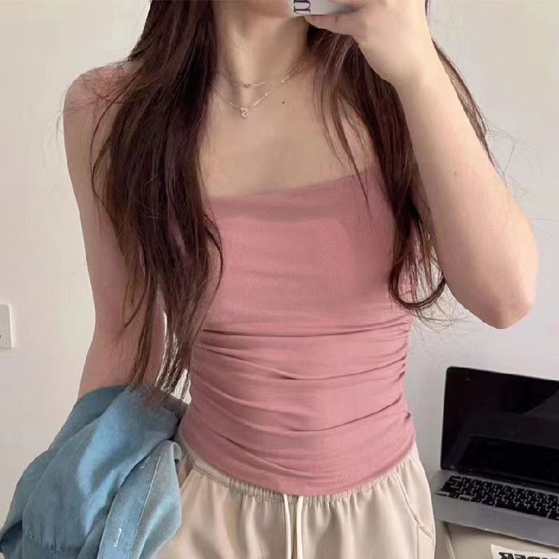 모든 매치 아우터 착용 얇은 어깨 조끼 가슴 패드 퓨어 슬링 원피스 끈이 없는 슬림핏 플리츠 베이스 조끼 여성용 브라스토어 가기