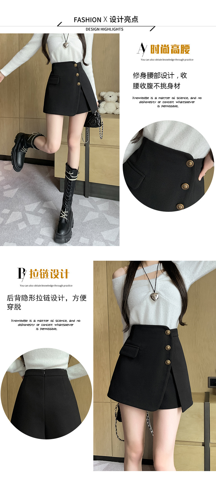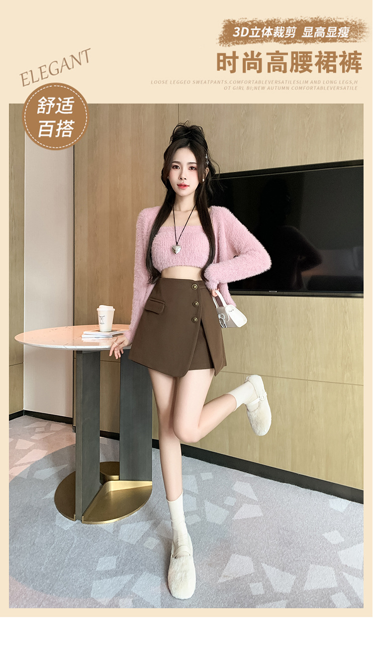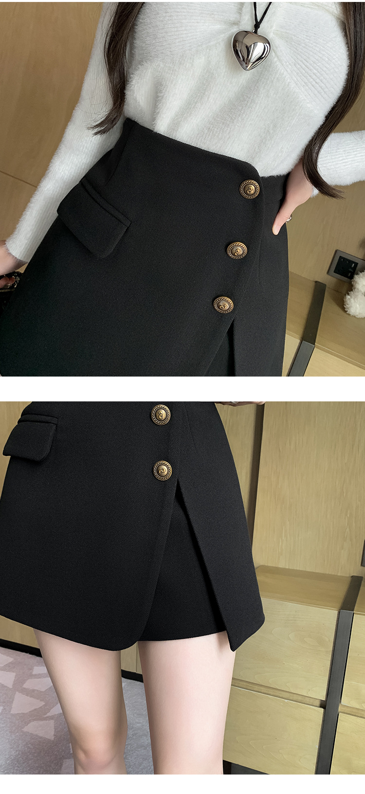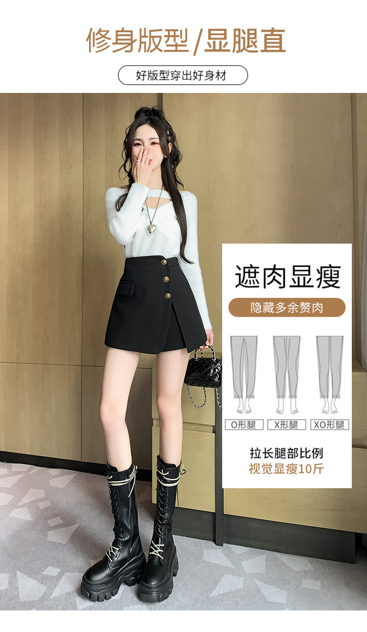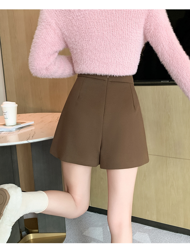 모직 반바지 여성용 2024 가을 겨울 신상 모직 A라인 스커트 팬츠 하이웨이스트 와이드 레그 부츠 팬츠 여성용 외출용 단추 장식 팬츠 스커트스토어 가기