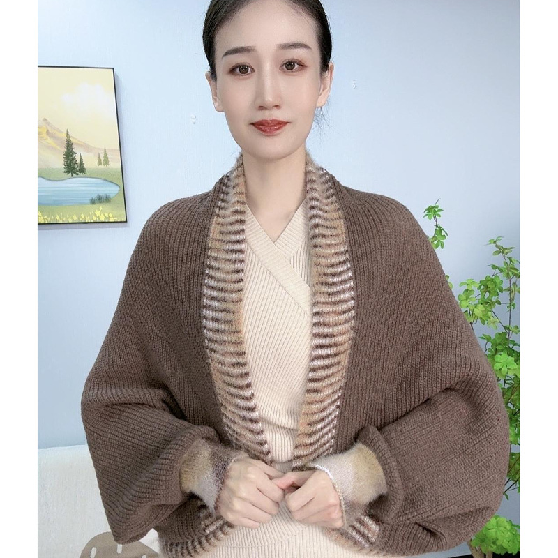 레인보우 에지 긴 소매 숄 가을과 겨울 따뜻한 느낌 새로운 니트 패션 레이디 카디건 모든 매치 부드러운 박쥐 슬리브