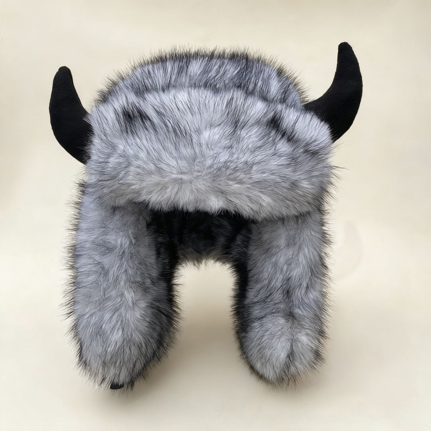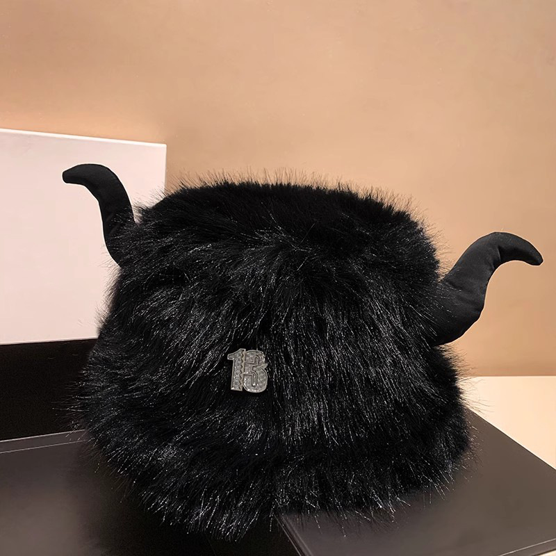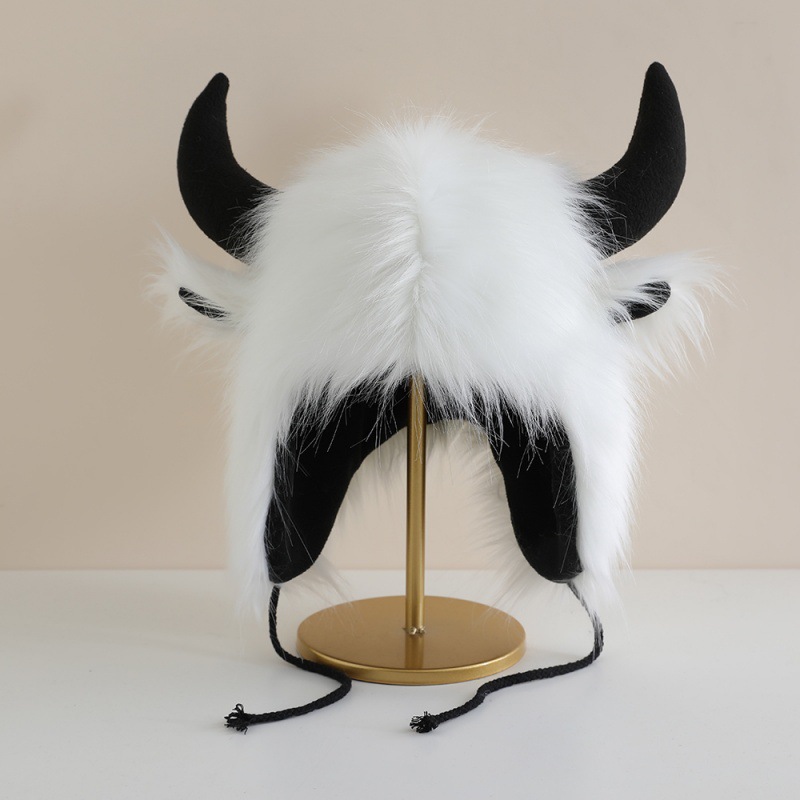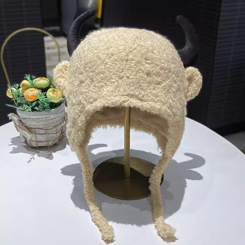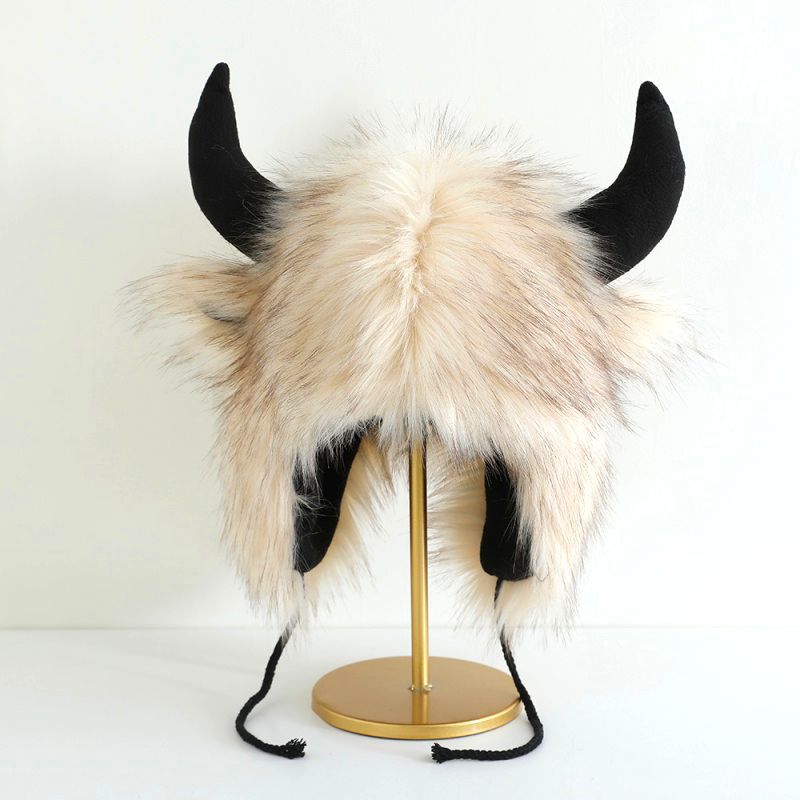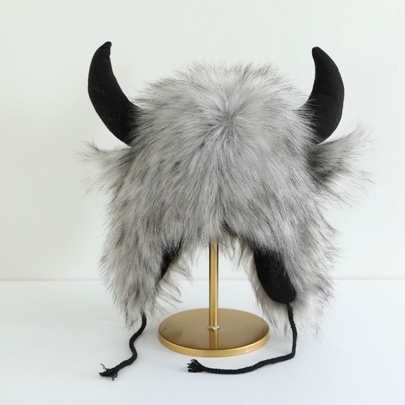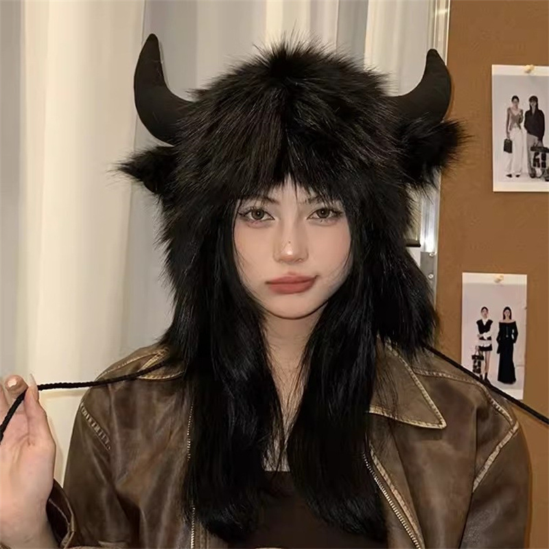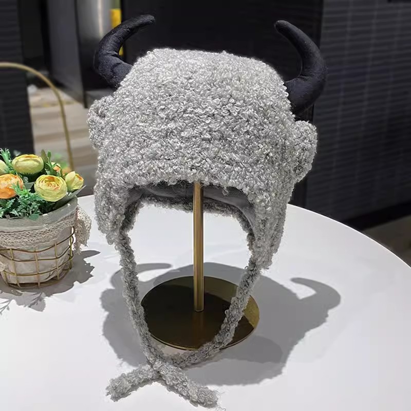 재미있는 Niutou 봉제 Lei Feng Hat 여성용 겨울 따뜻한 귀 보호 방풍 방한 사이클링 불 악마 왕 모자 할로윈스토어 가기