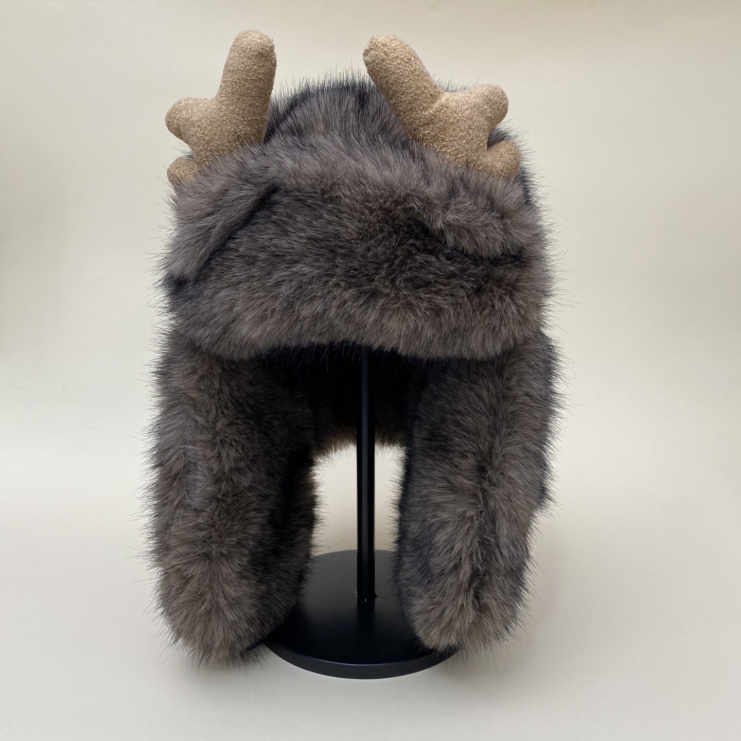 • 커피색 레이펑 모자 (사슴뿔 장식)