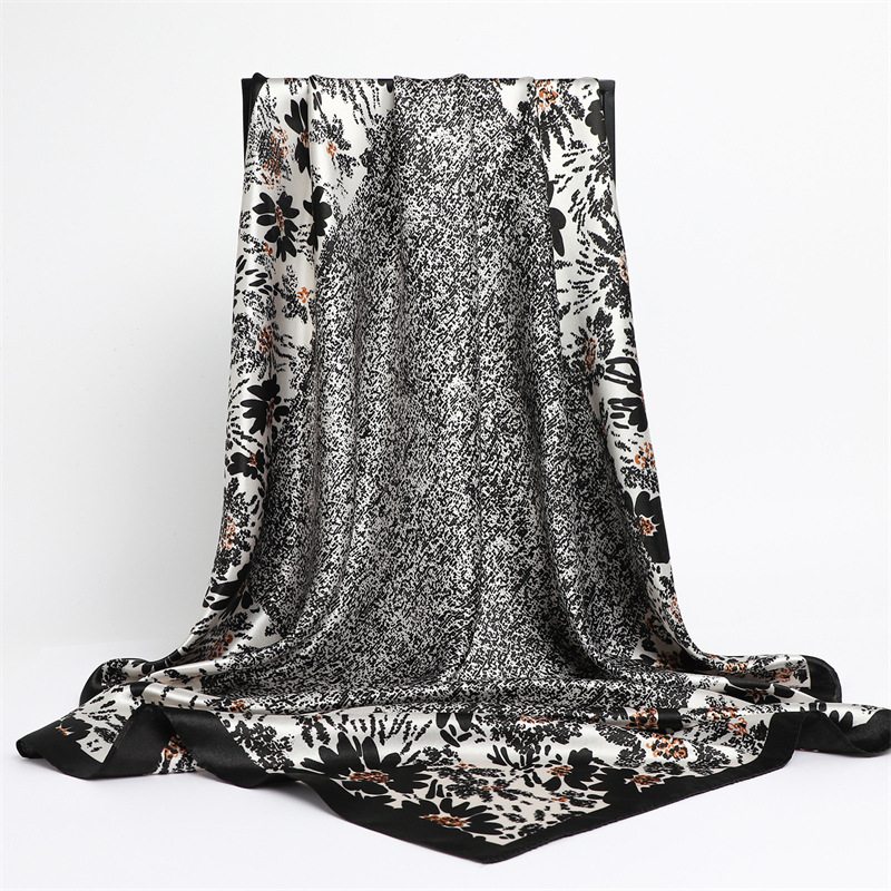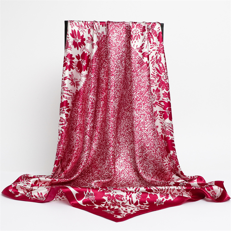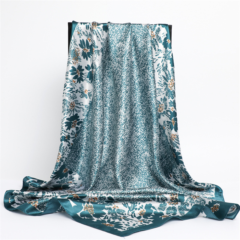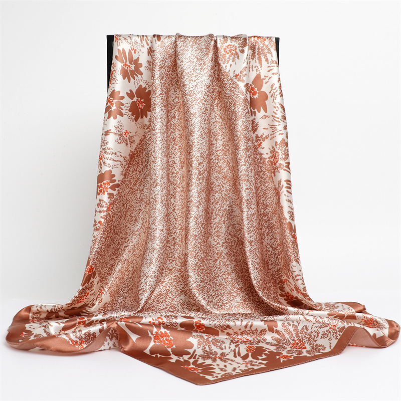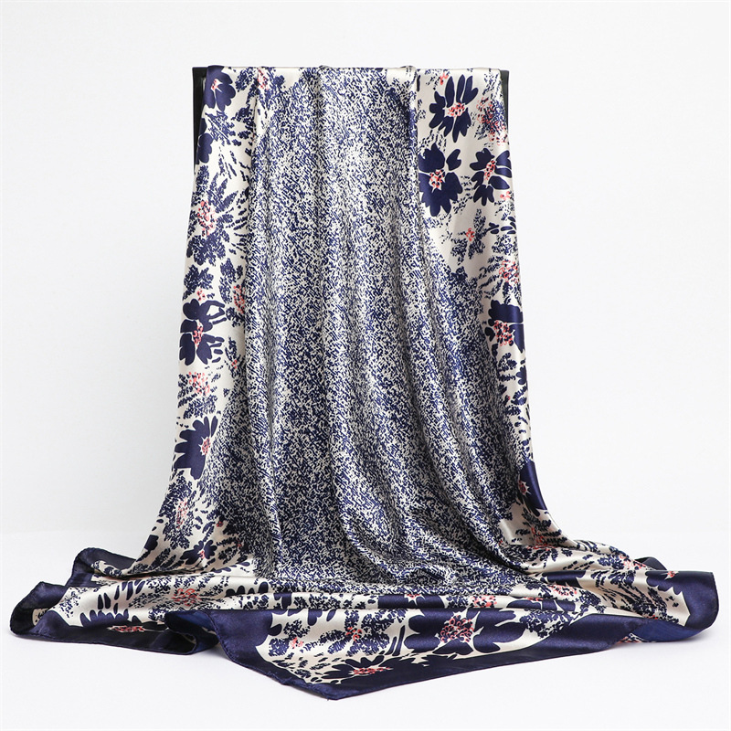 빈티지 우아한 인쇄 실크 스카프 꽃 스카프 숄 여행 선 스크린 대형 스퀘어 스카프 90 세이드 모조 실크 터번 여성용