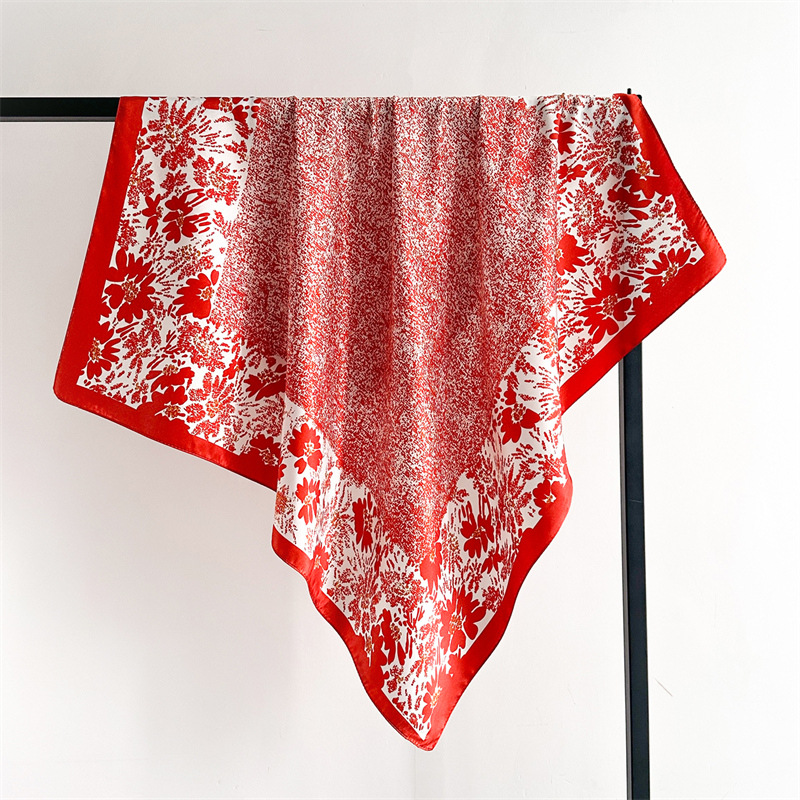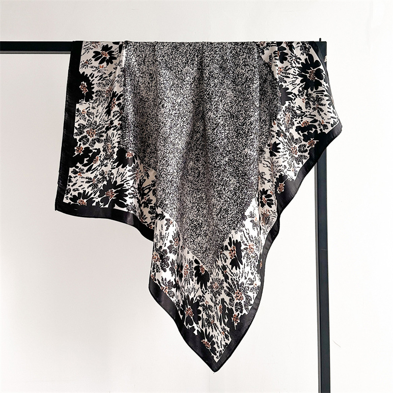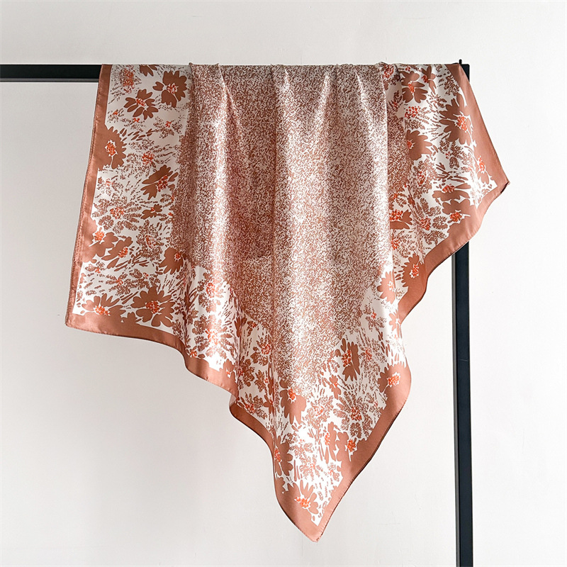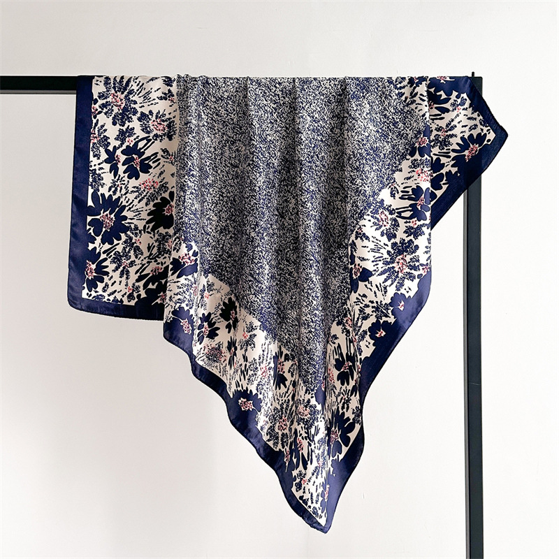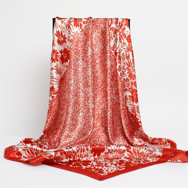 빈티지 우아한 인쇄 실크 스카프 꽃 스카프 숄 여행 선 스크린 대형 스퀘어 스카프 90 세이드 모조 실크 터번 여성용