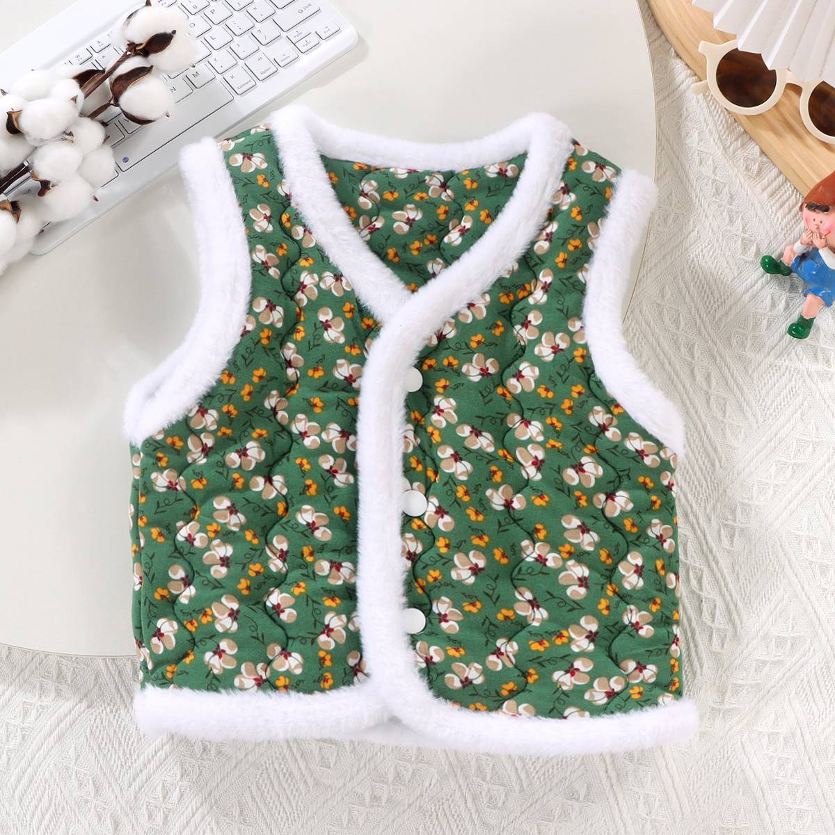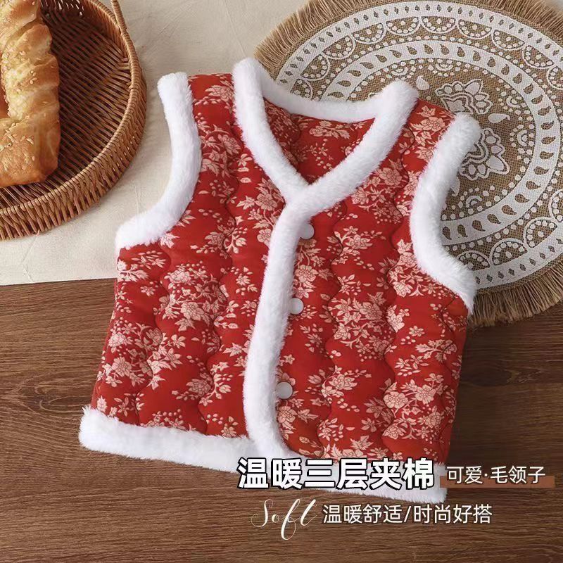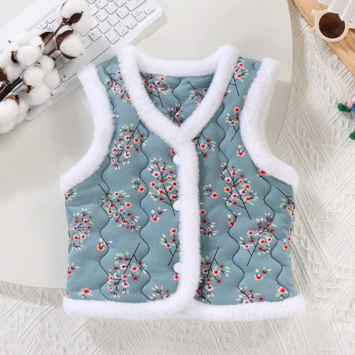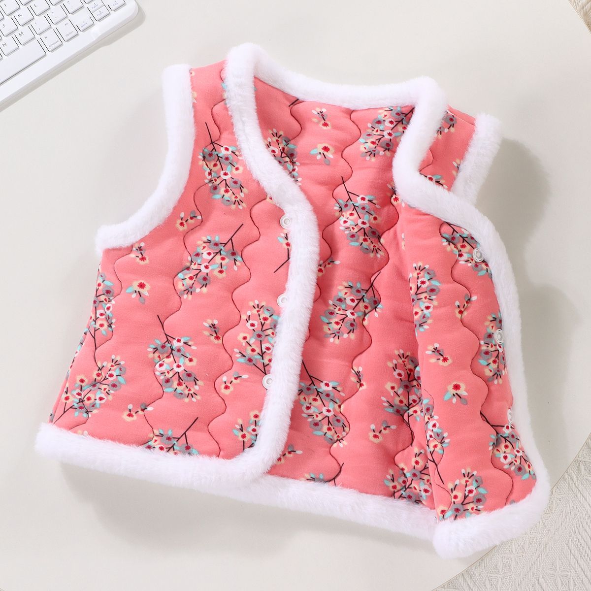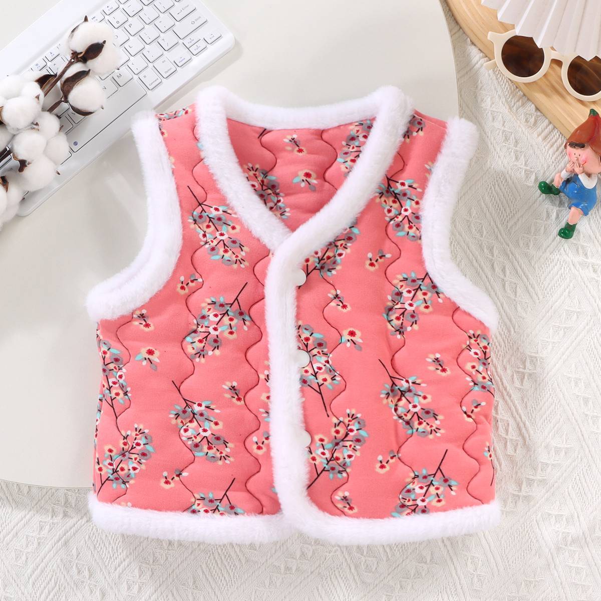 여아 조끼 동북 큰 꽃 가을과 겨울 의류 새로운 중국 스타일 조끼 겉옷을 입고 어린이 조끼 국가 스타일 면 따뜻한 옷