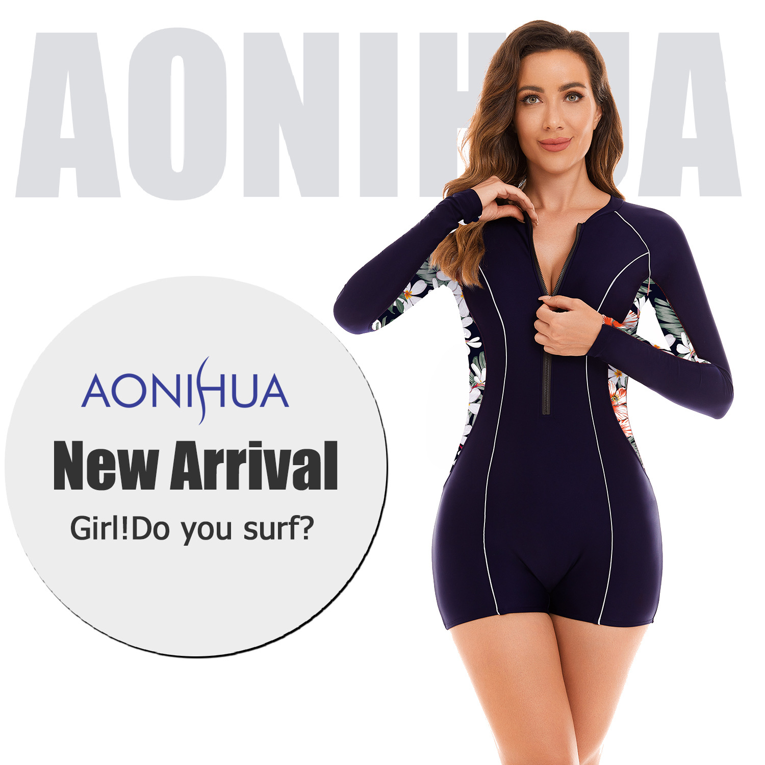 유럽과 미국 대외 무역 원피스 긴팔 플랫 앵글 서퍼 세트 여성용 수영복 자외선 차단제 다이빙 세트 수영복 Oni Flower 28044스토어 가기