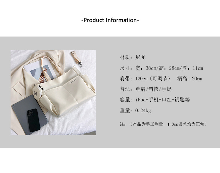 옥스포드 천 방수 숄더백 대용량 토트 백 크로스 바디 백 대학 컴퓨터 버전 학생 클래스 스쿨 백 다기능스토어 가기