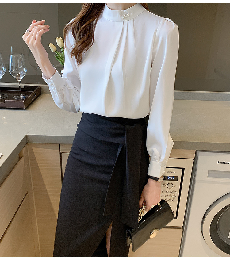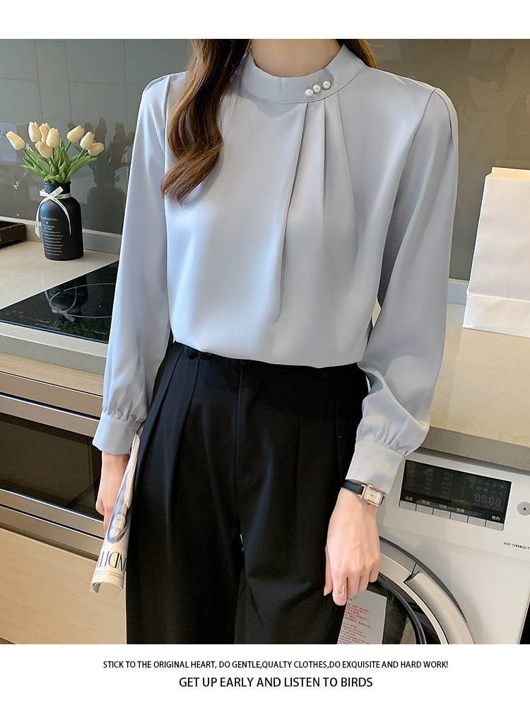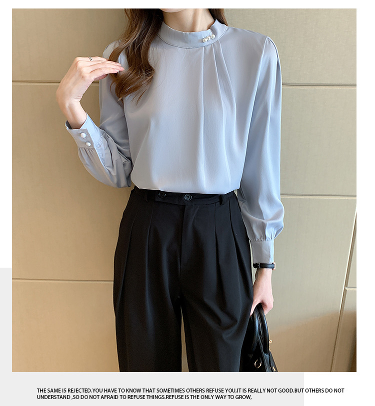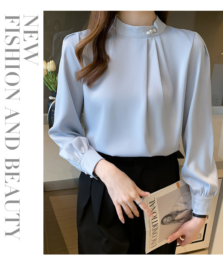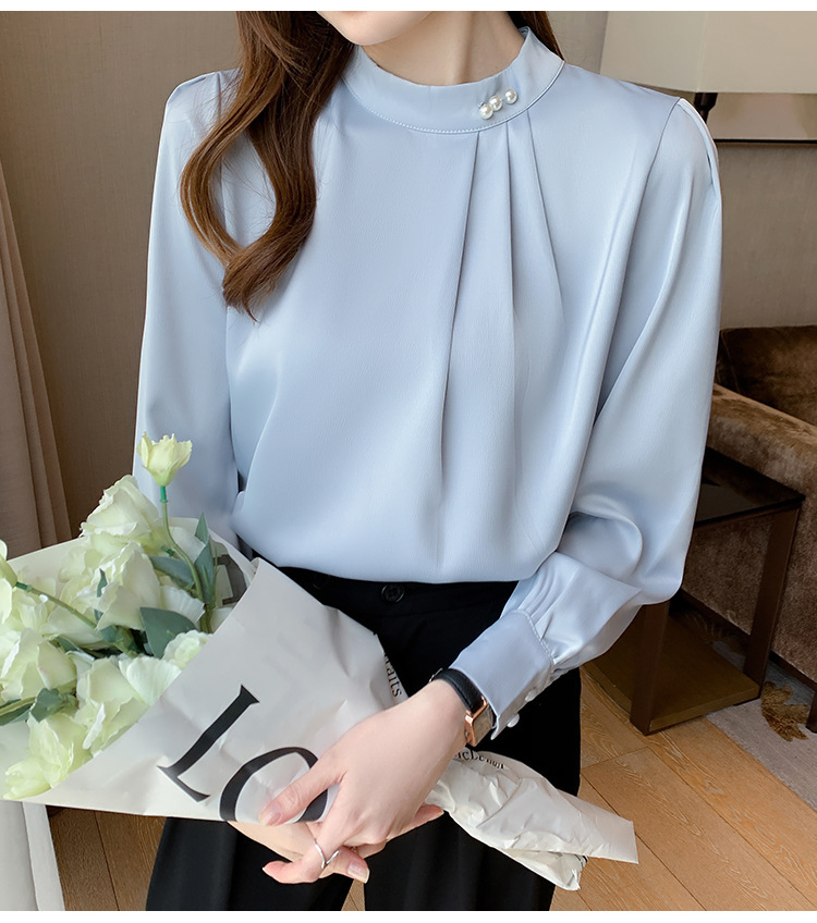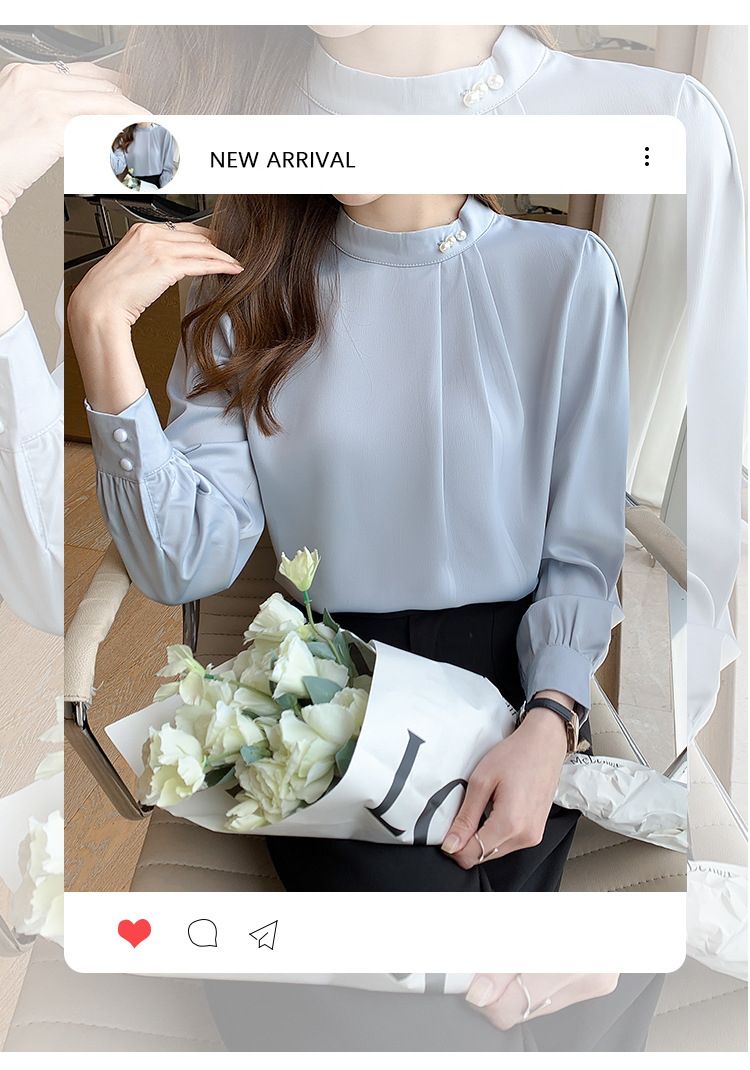 새틴 셔츠 여성용 긴팔 웨스턴 비디베이스 셔츠 2025 봄과 가을 디자인 센스 니쉬 쉬폰 셔츠스토어 가기