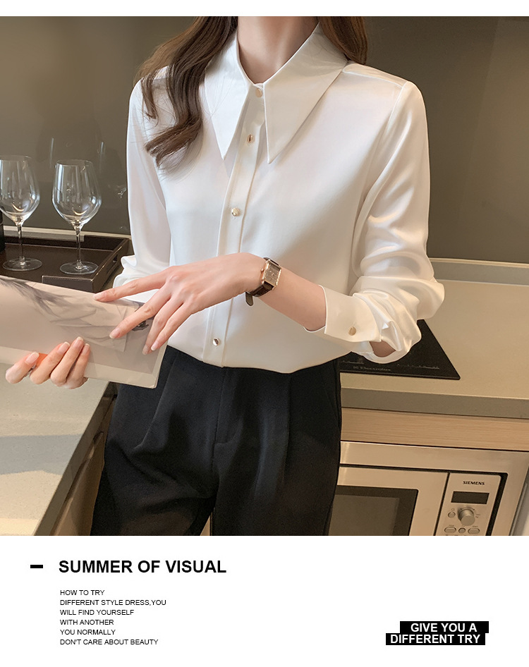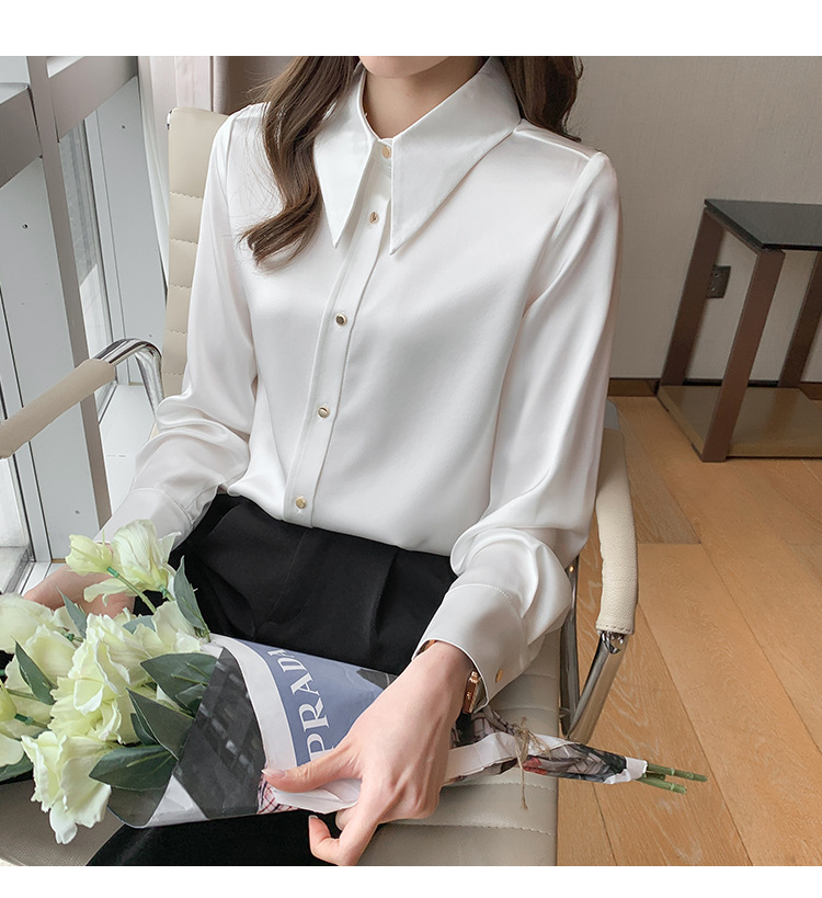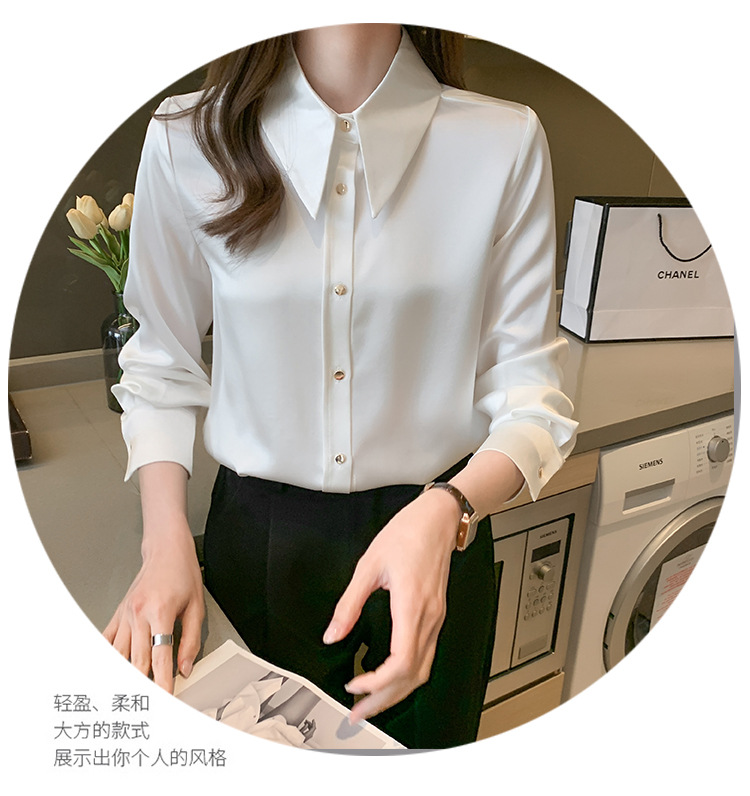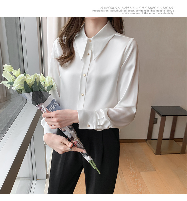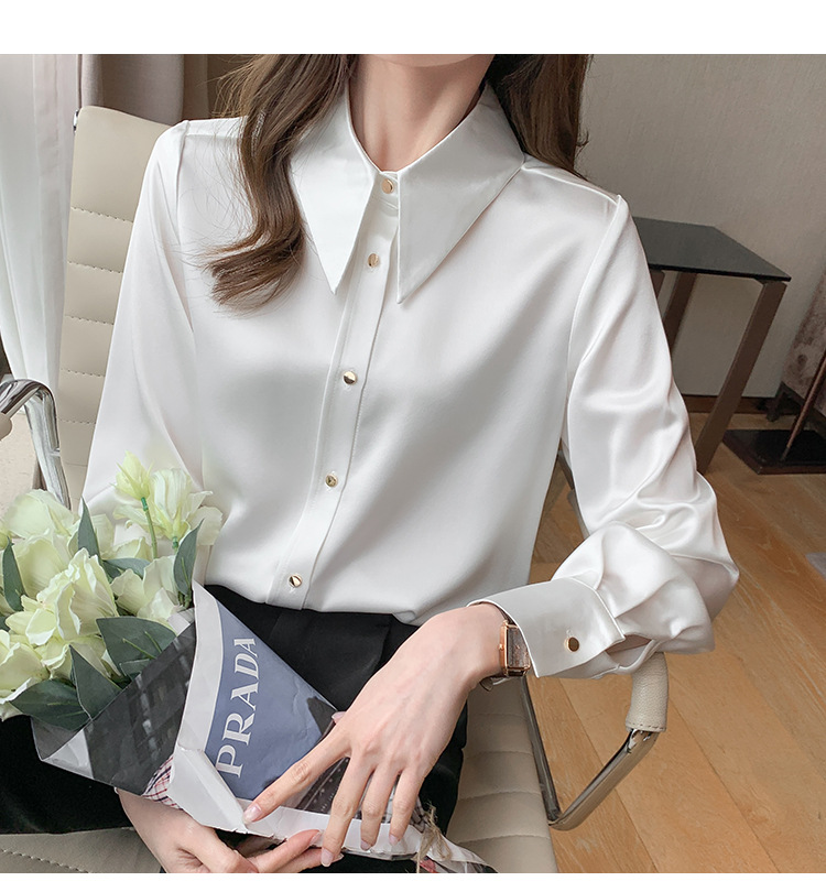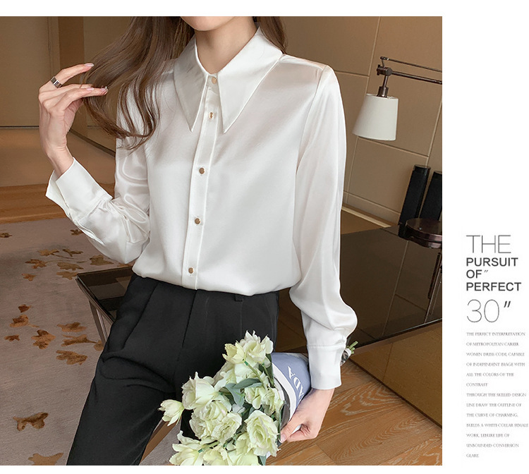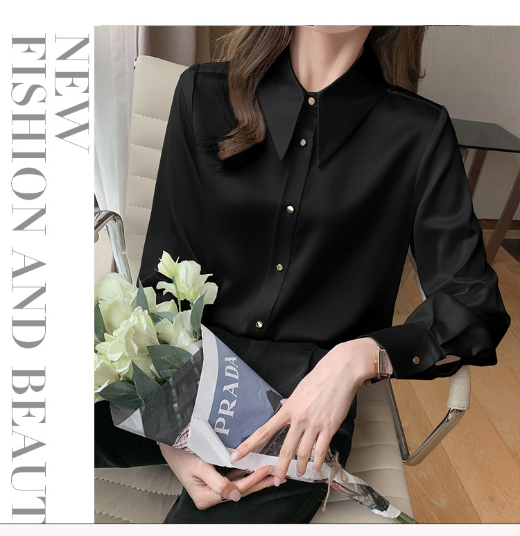 2025 봄 새로운 긴팔 새틴 셔츠 여성 고급 OL 통근 캐주얼 단순 광택 셔츠 쉬폰 셔츠스토어 가기